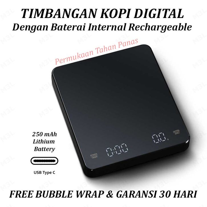 Timbangan Kopi USB Rechargeable 3KG 0.1GR Timer V60 Drip Coffee Scale