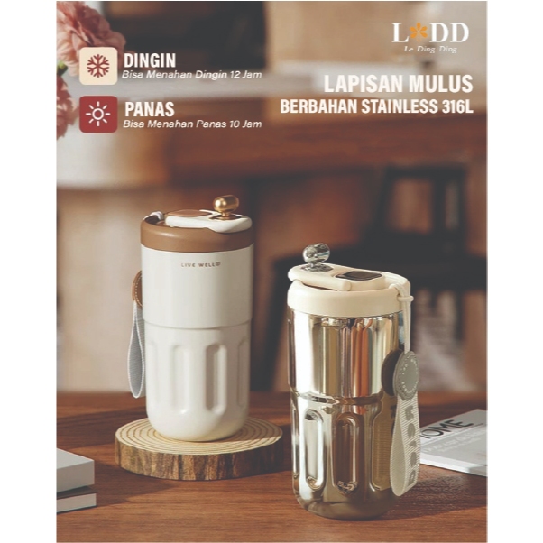 Gelas Tumbler Kopi Botol Minum Aesthetic Digital Led Stainless 450ml Termos Kopi Mini Kekinian
