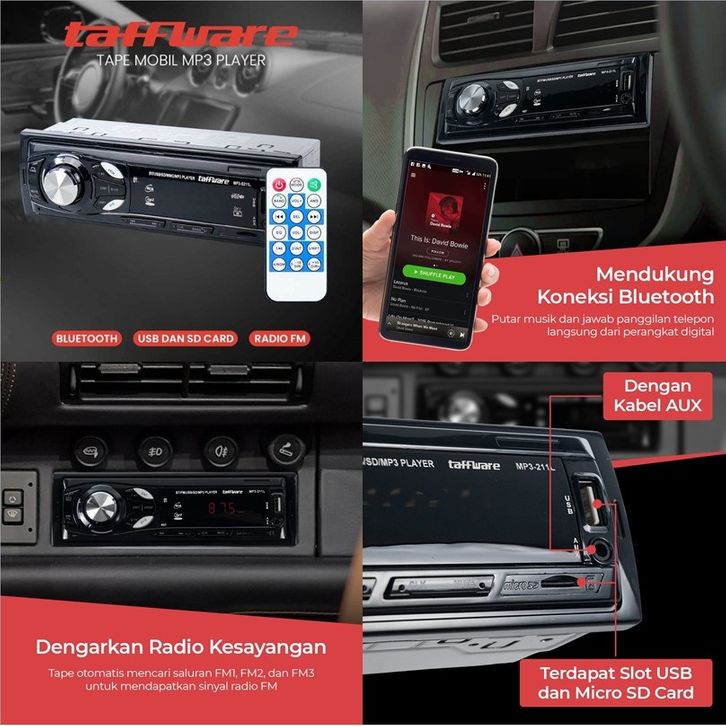 Tape Mobil Single Din Orca MP-6686 Tape Single Din Head Unit Radio USB SD Card MP3 Tape Mobil Bluetooth Radio Mobil