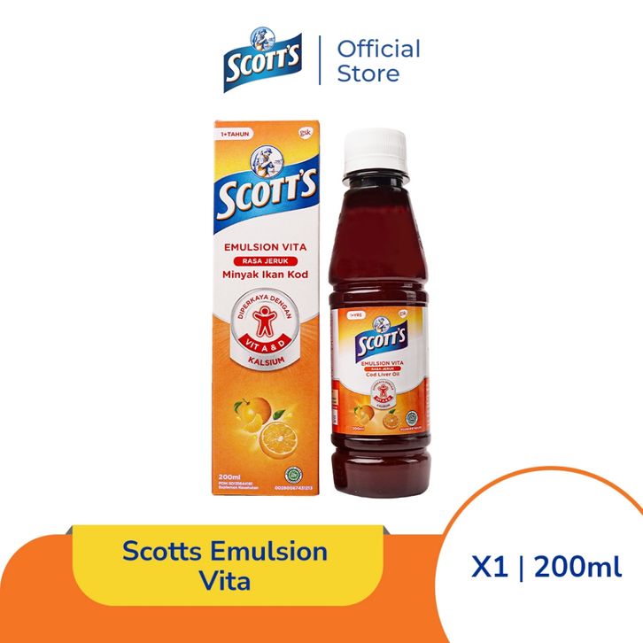Scotts Vitamin dengan Omega 3 Vitamin A dan D + Kalsium Vita Rasa Jeruk 200ml