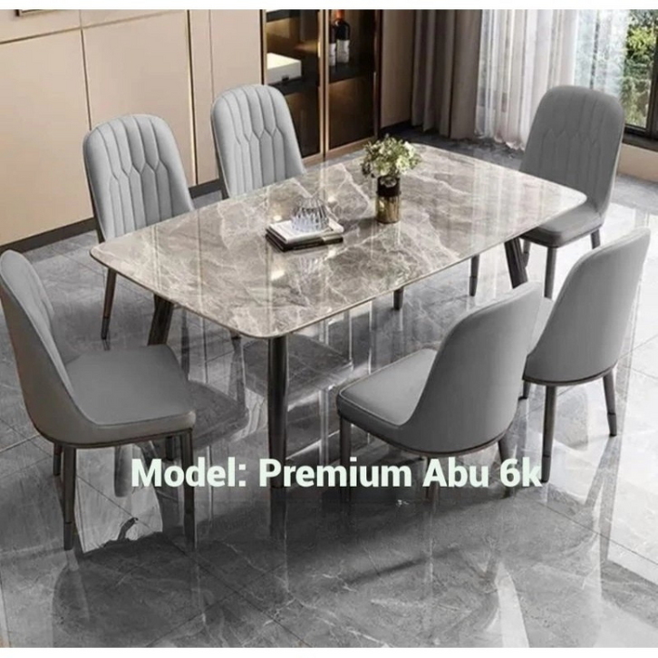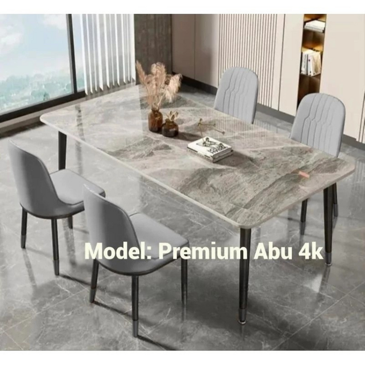 MEJA MAKAN MARMER MINIMALIS SET 4 KURSI RANGKA BESI STAINLES DINDING TABLE (FREE ONGKIR )