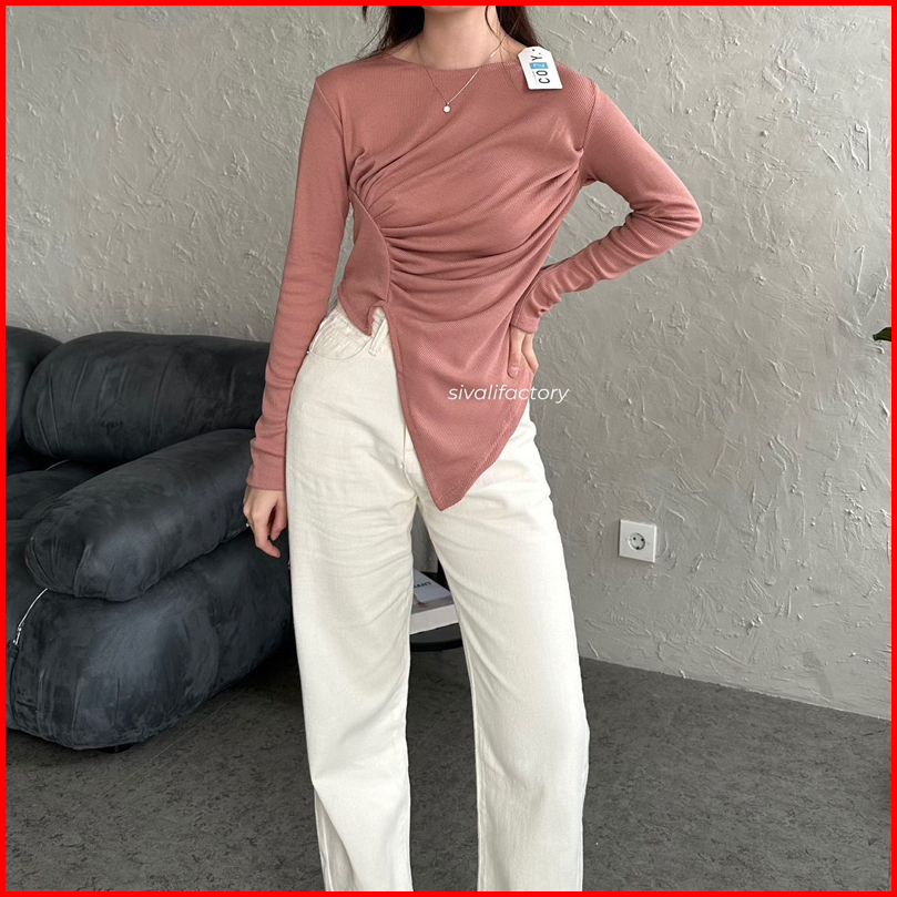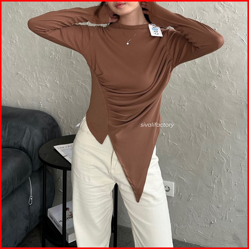 Sivali Zia Knit Top Atasan Knit Wanita - Korean Top - Baju Knit Wanita Lengan Panjang - Long Sleeve