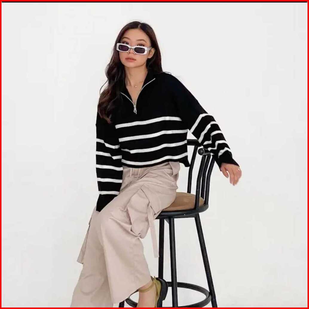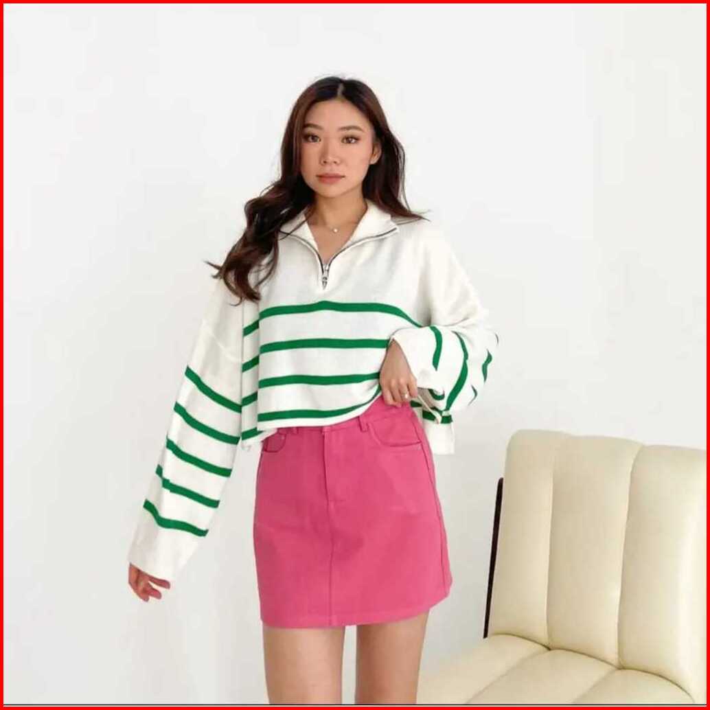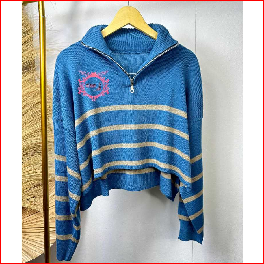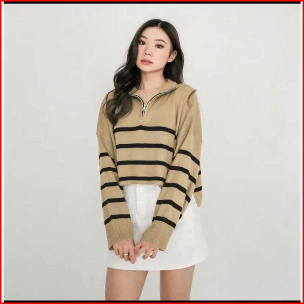 Fx Shop Tavia Knit Zipper Crop Top Blouse Wanita Atasan Wanita Sweater Wanita