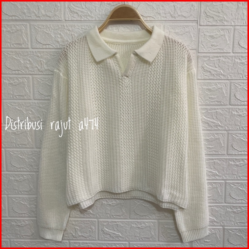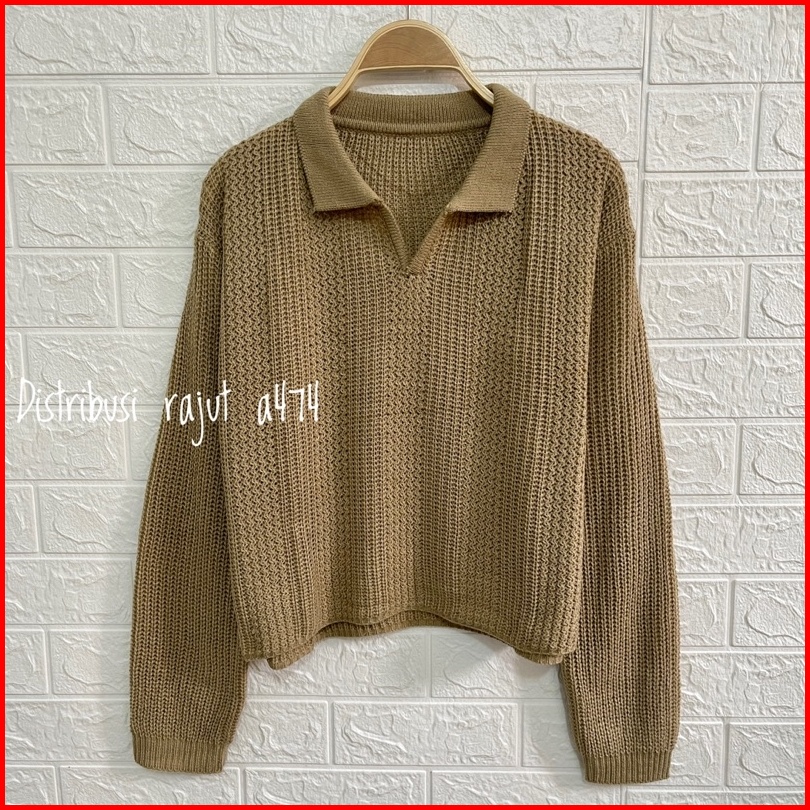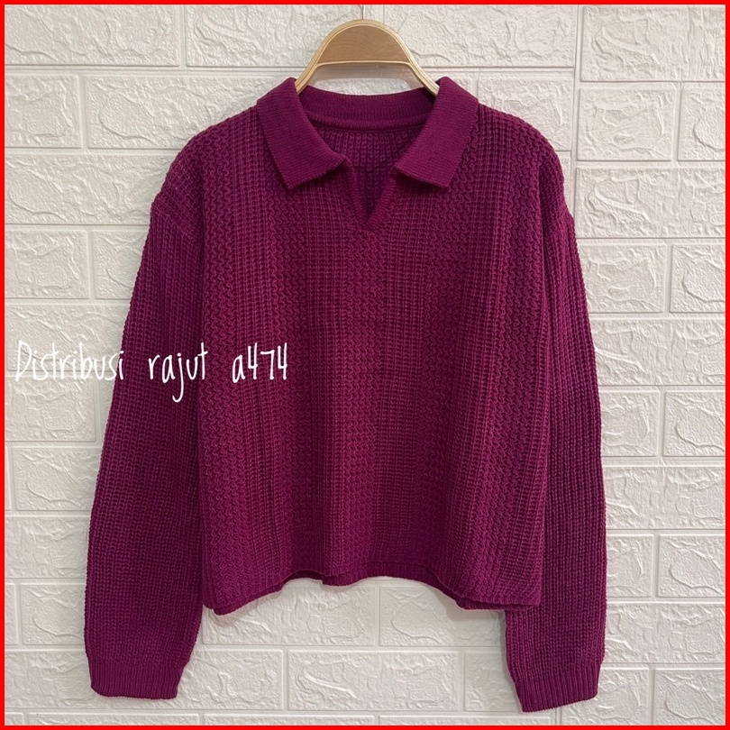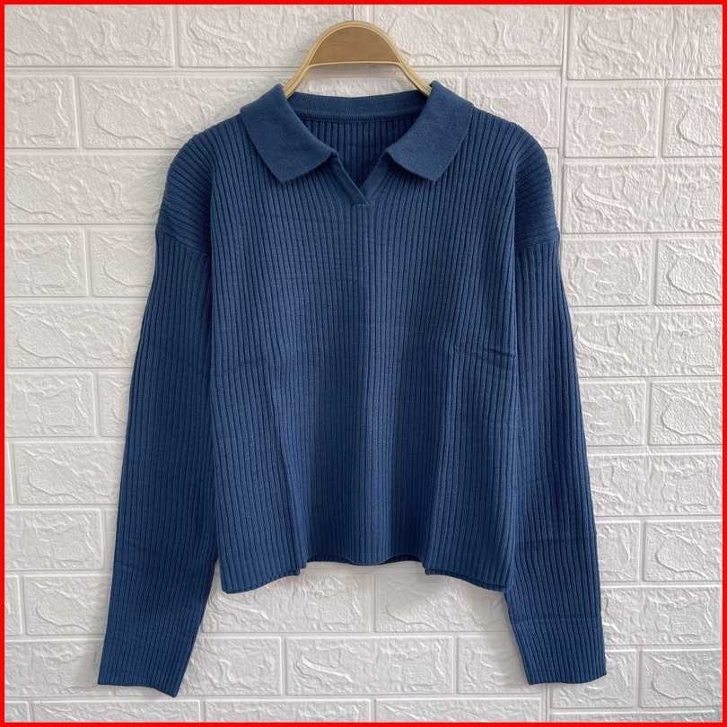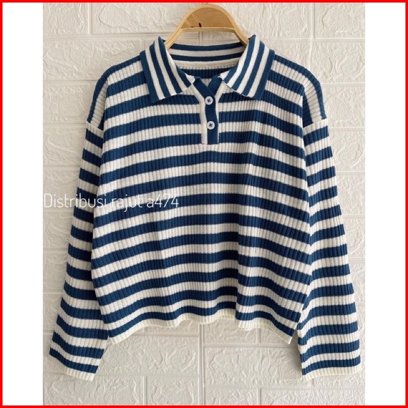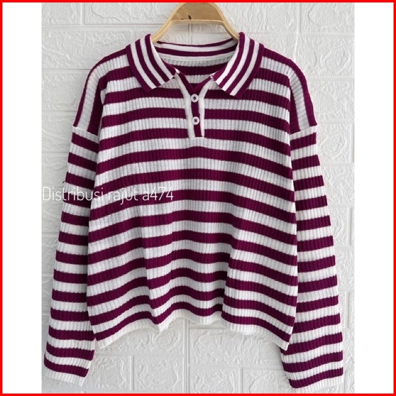 Sweater Rajut Kerah Motif Garis Secer Wanita