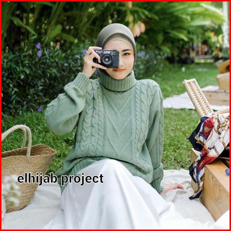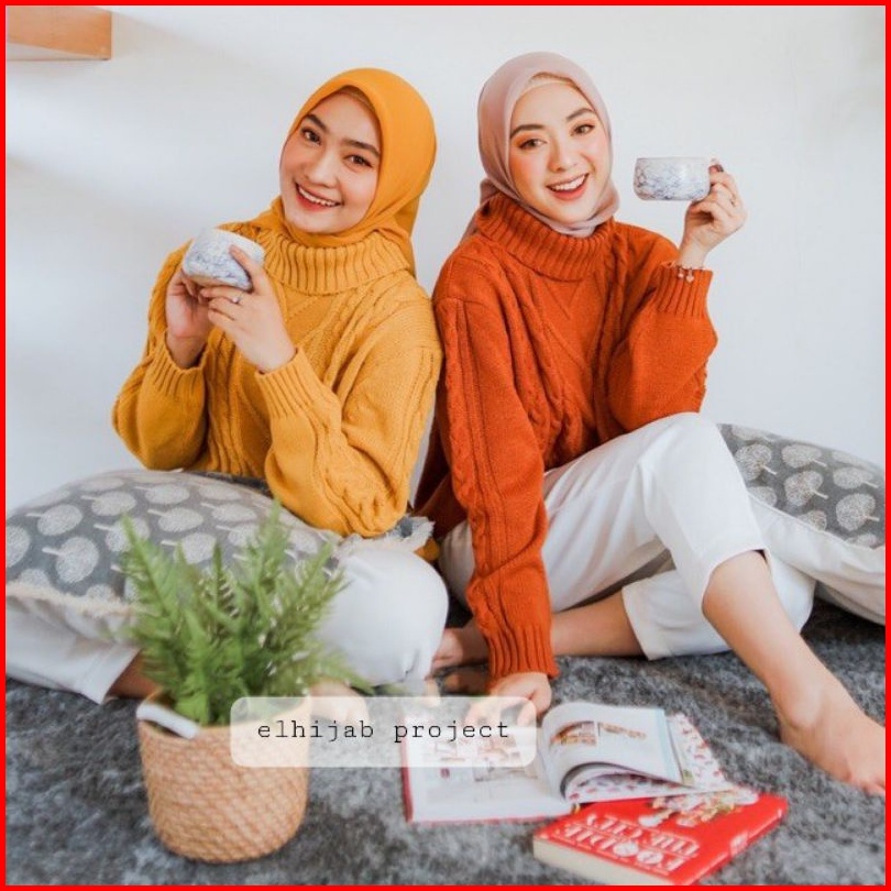 Premium Megan Sweater Cable Knit Sweater Rajut Cable Turtleneck R.6 S-2 S-3 Label