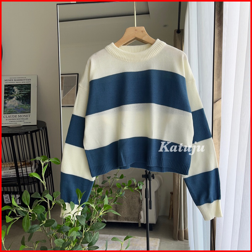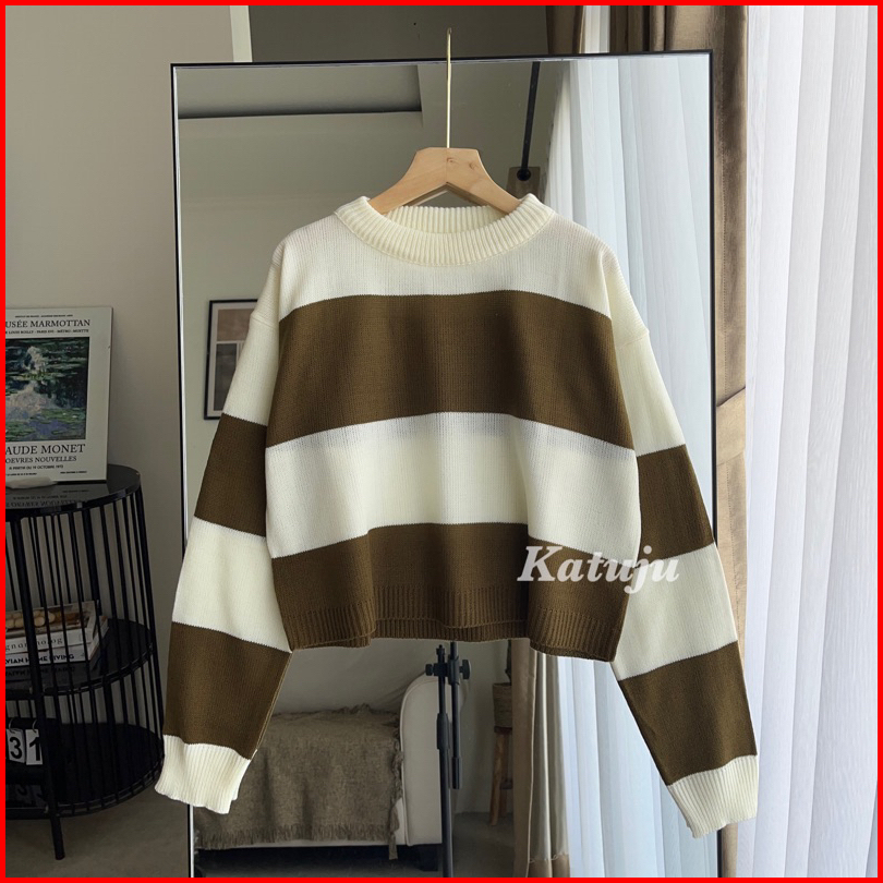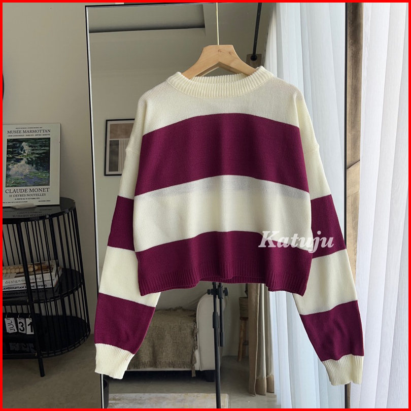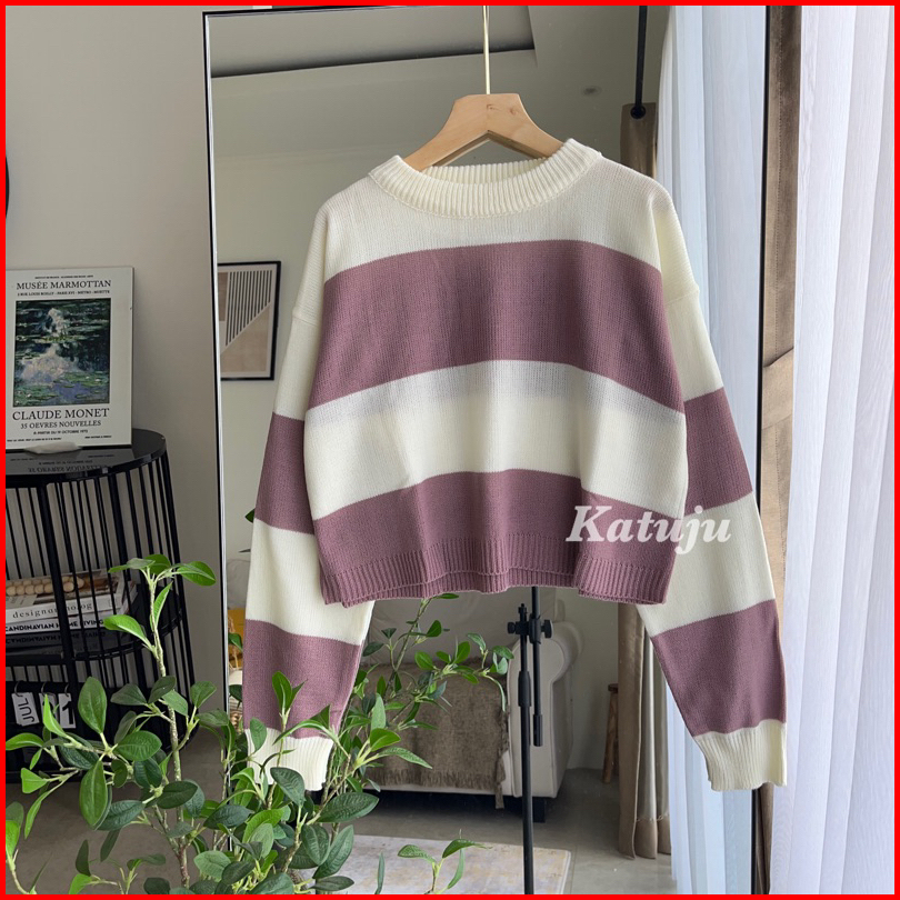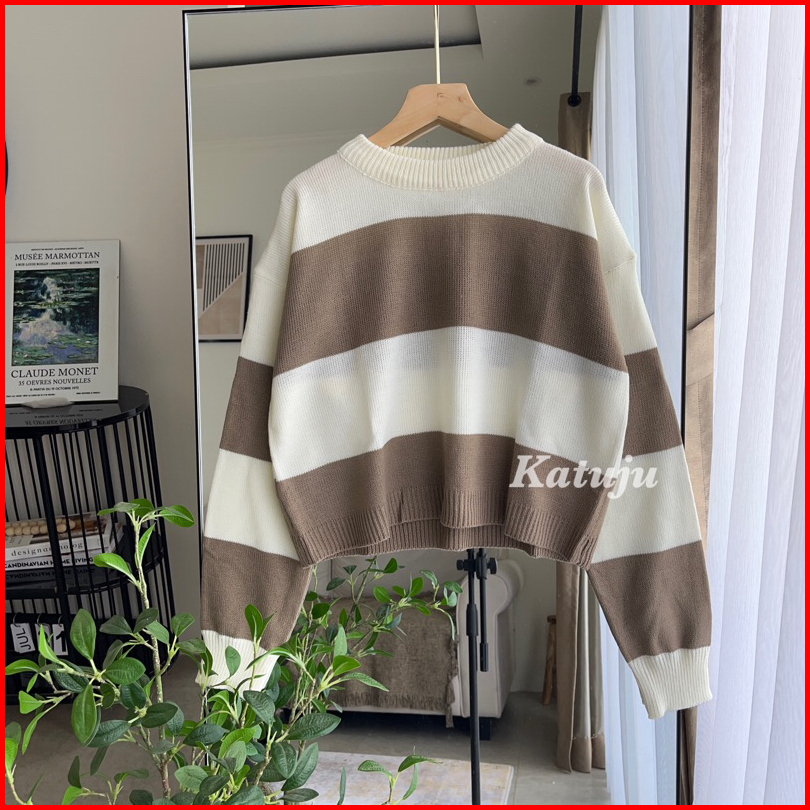 Crop Top Rajut Motif Garis Mutia