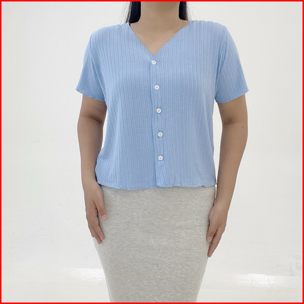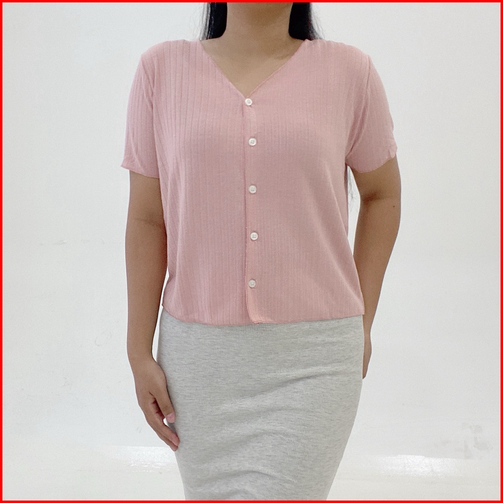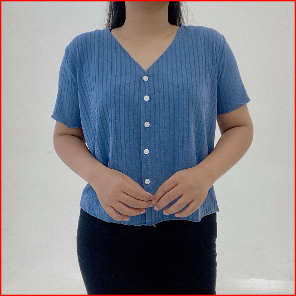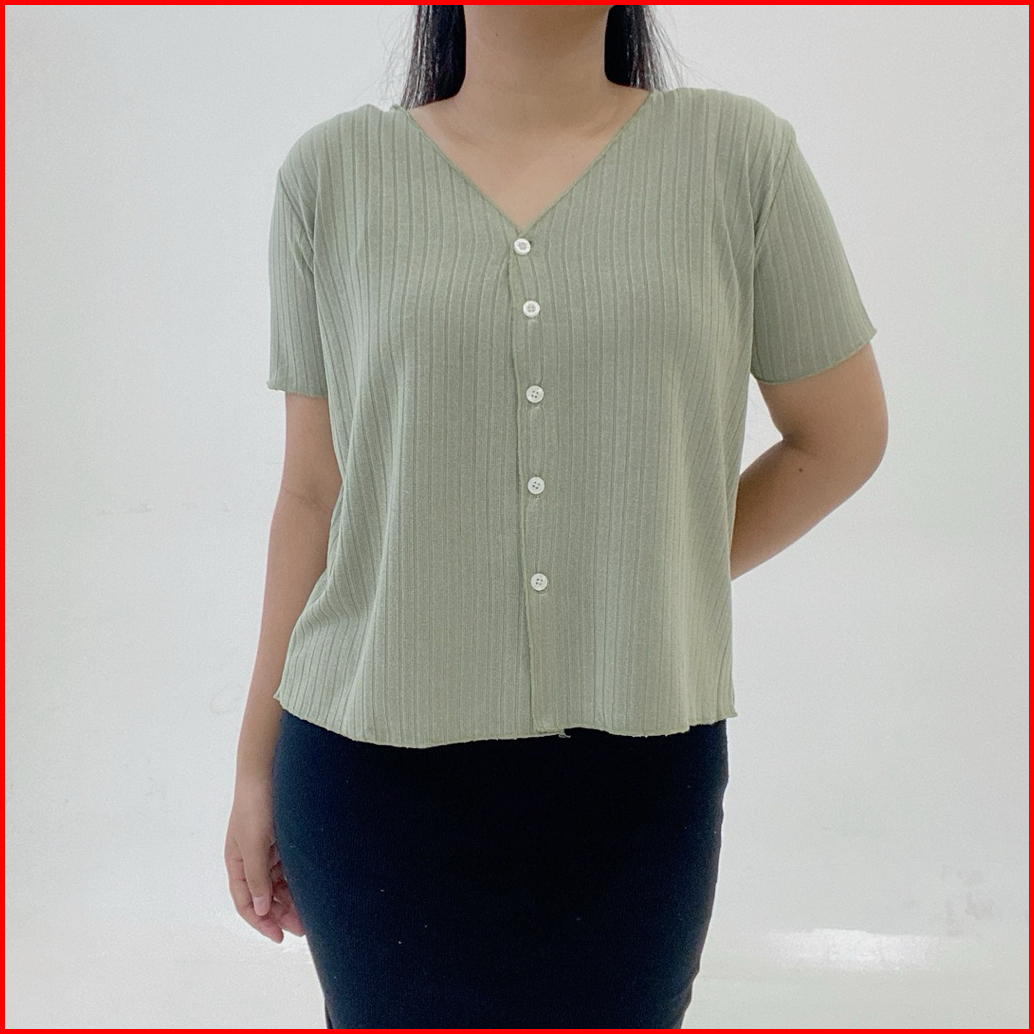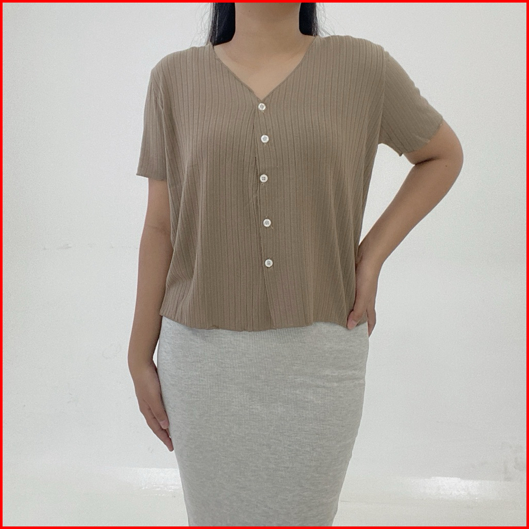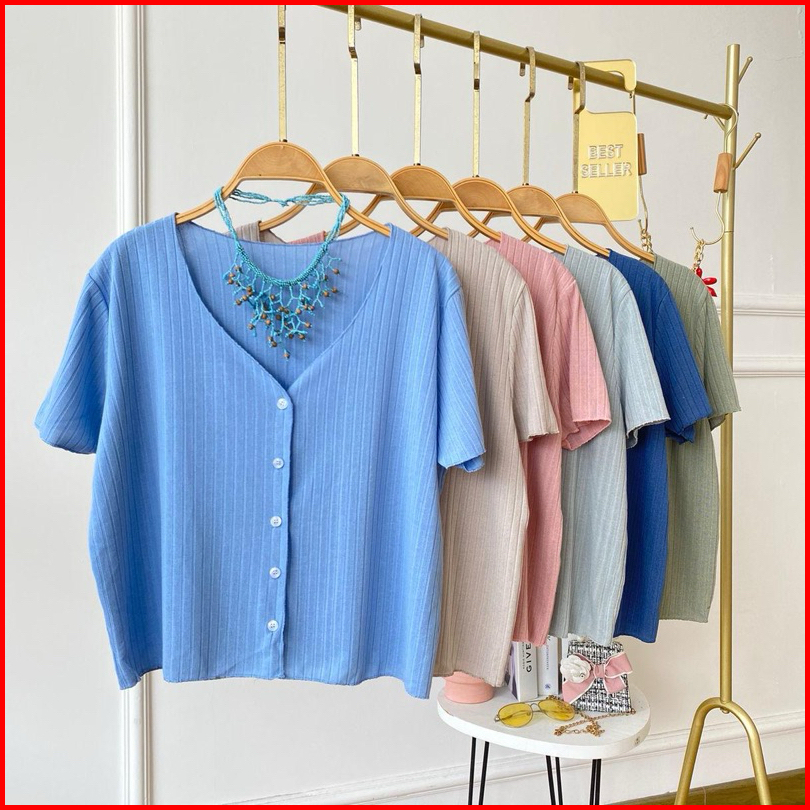 Yoona Daisy Knit Top Button - Atasan Vneck Kancing Rajut