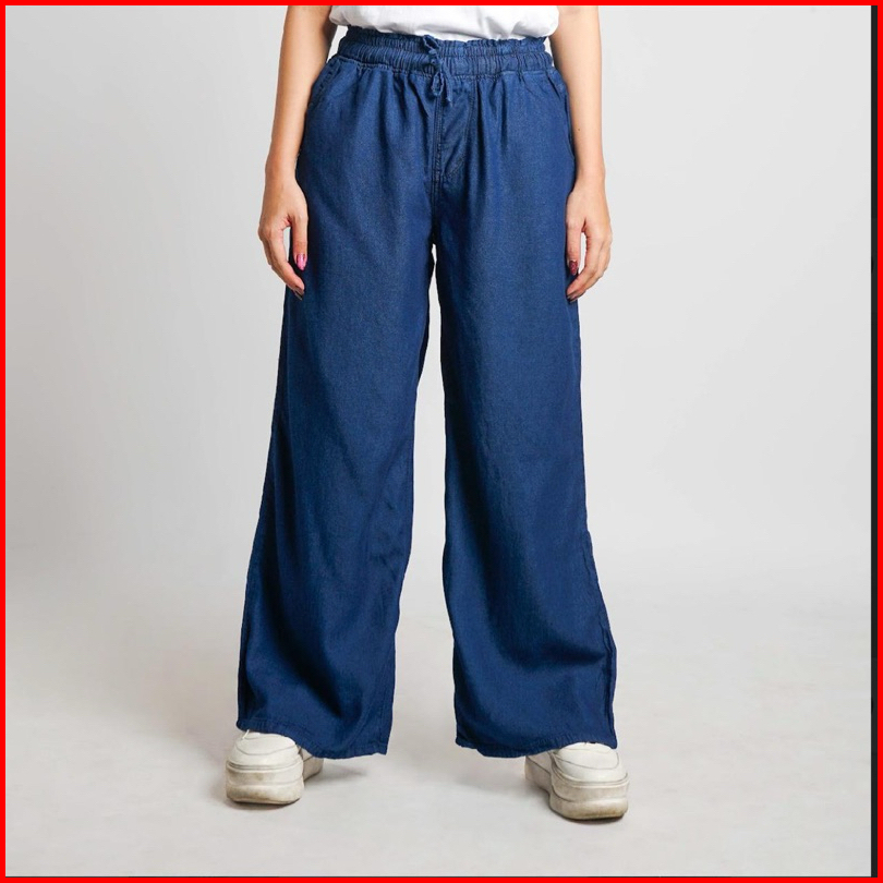 Celana Kulot Panjang Jeans Wanita Fit Super Jumbo 100kg Bigsize Jumbo Pinggang Karet Coco Dline