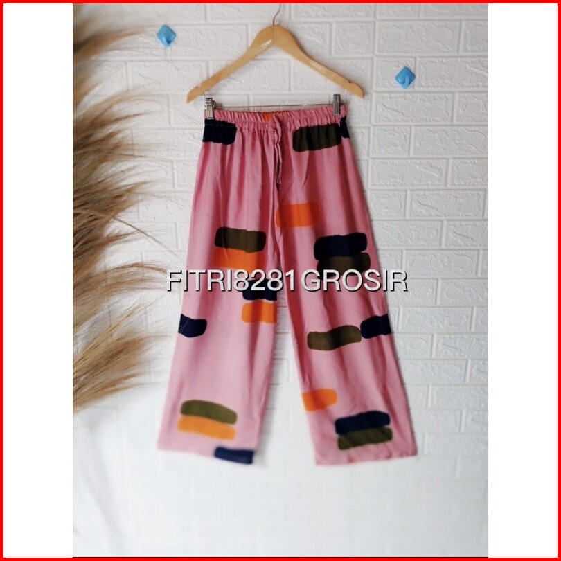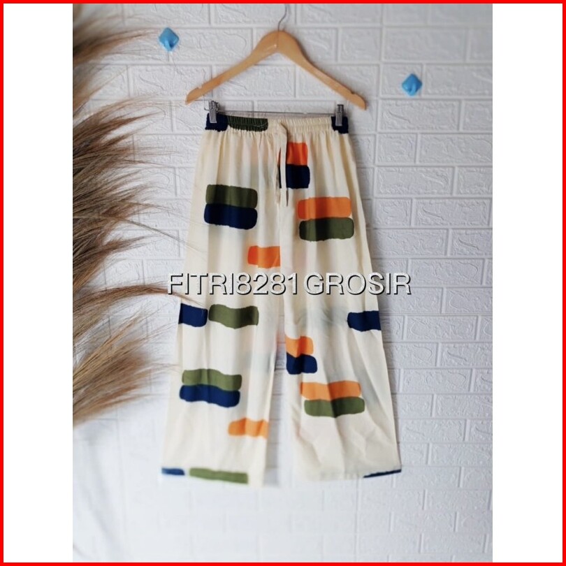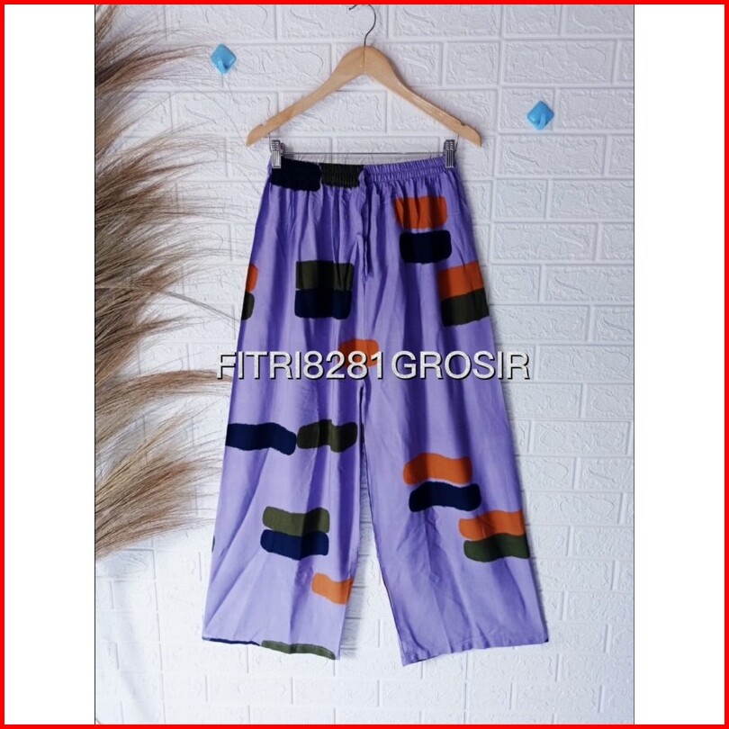 Celana Kulot Motif Strip2 Bata Lembut Nyaman Di Pakai Sehari2 Rayon