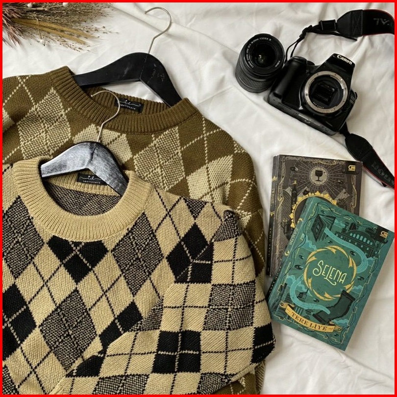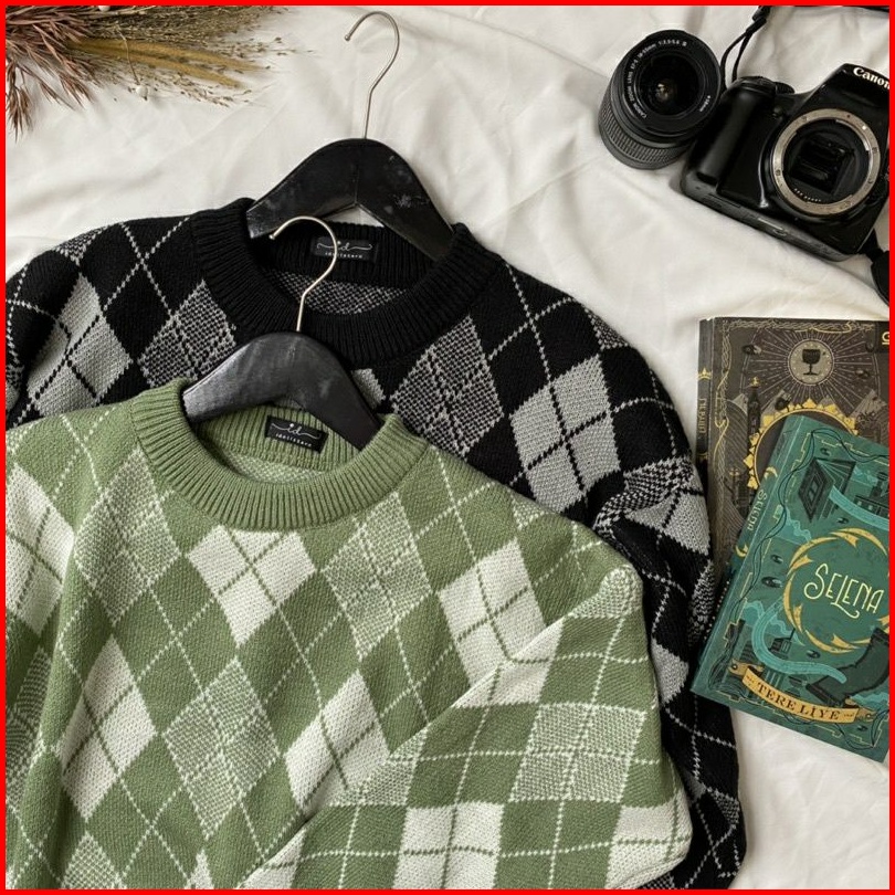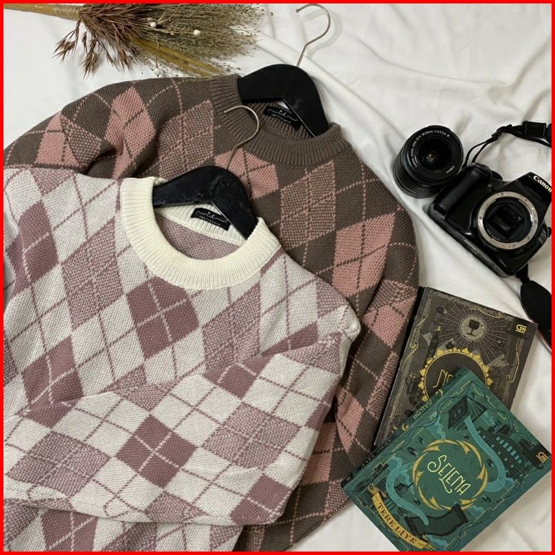 Sunna Sweater Atasan Sweater Wanita Korea Lengan Panjang Knit Halus Import Ketupat Argyle Premium Mkm