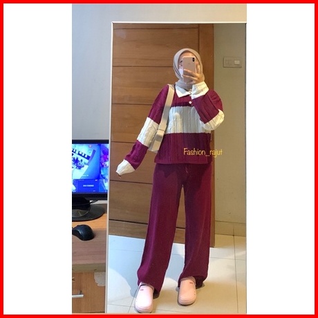 One set hitam, One set crem tua, One set coral, One set mauve, One set matcha, One set moca, One set dark fuschia, Atasan aja fuschia