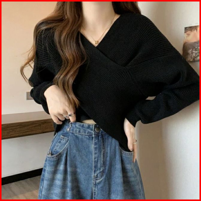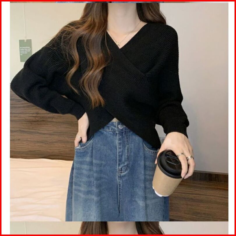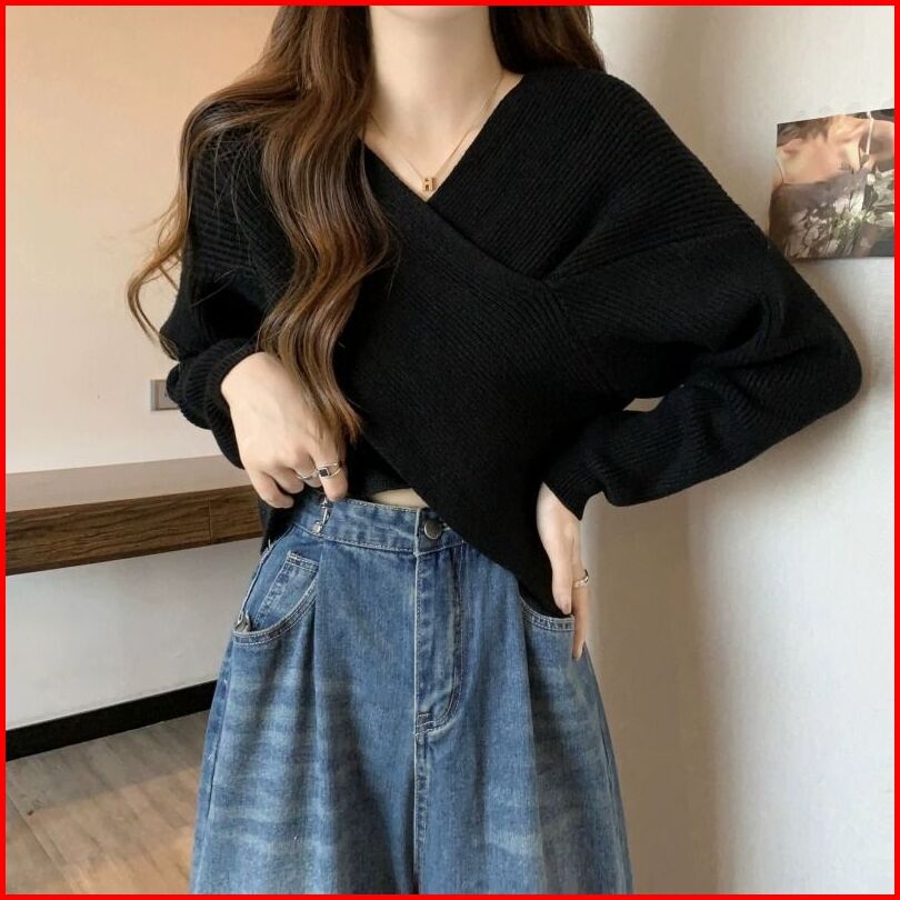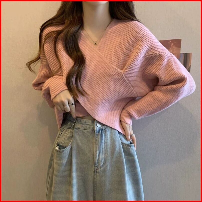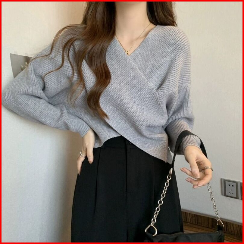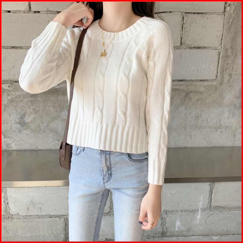 Sweater Putih Korea Style Sweater Rajut Lengan Panjang Atasan Rajut