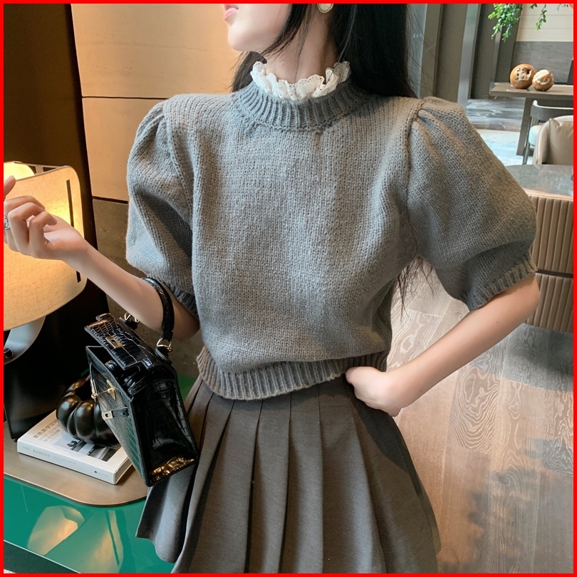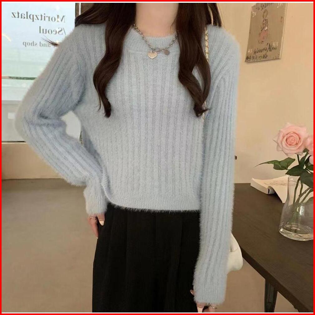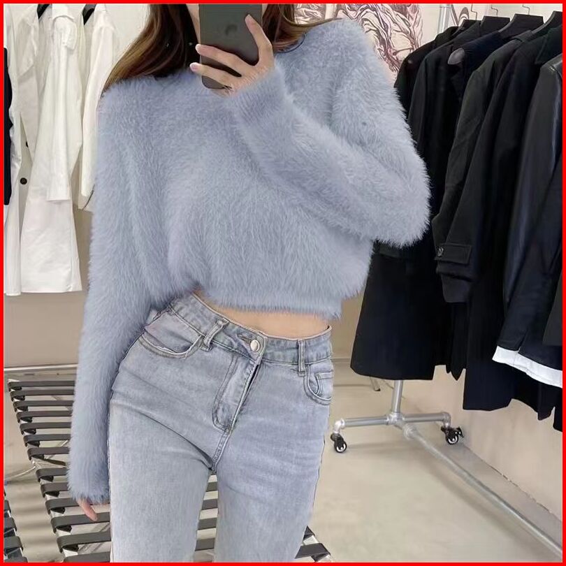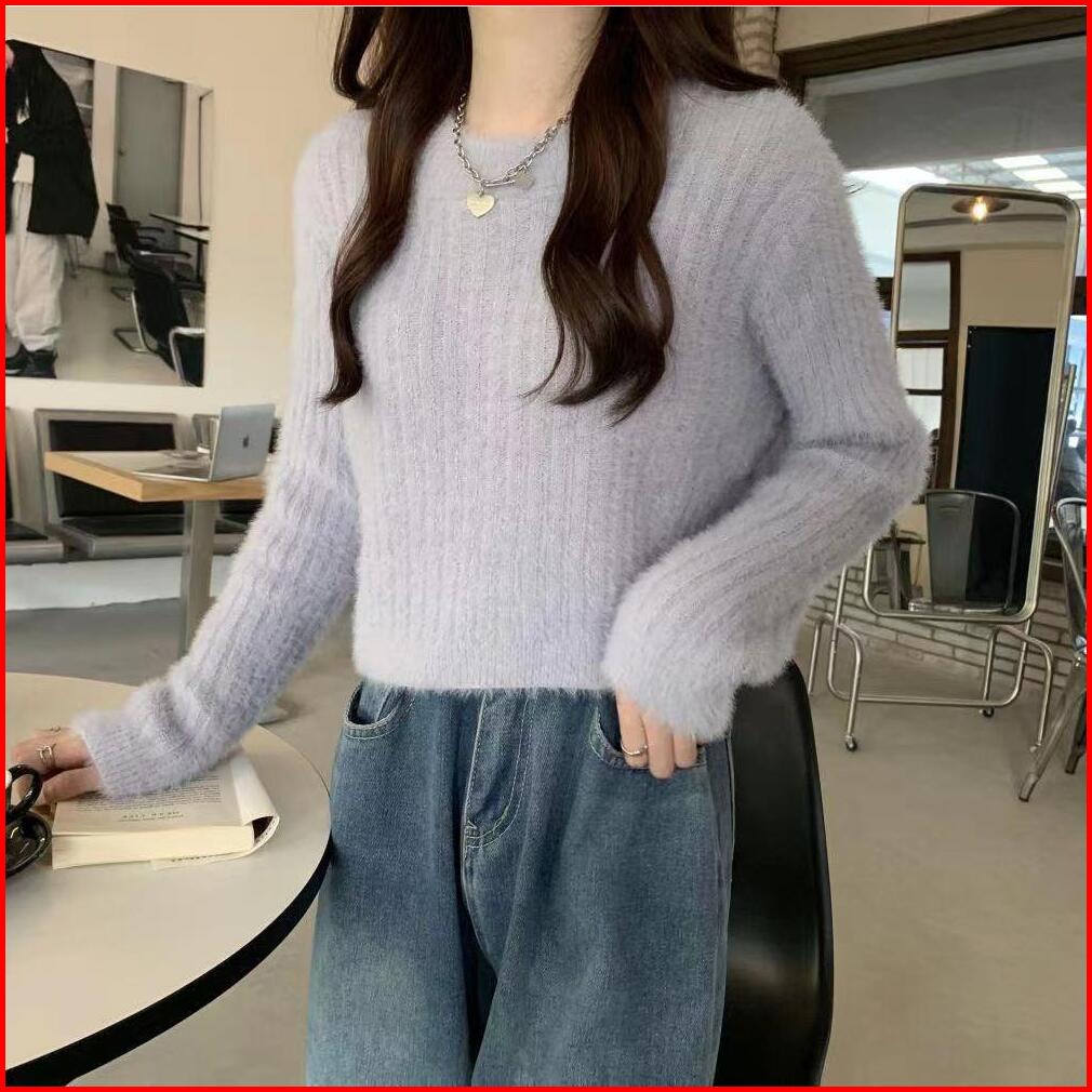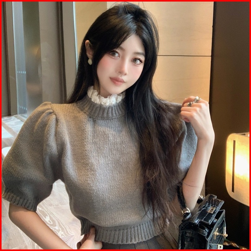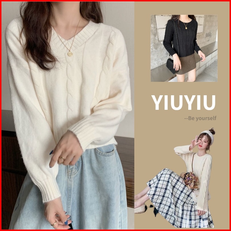 Yiu Yiu Rajut - Oversize Crop Top Rajut Wanita Lengan Panjang Knitwear Puith