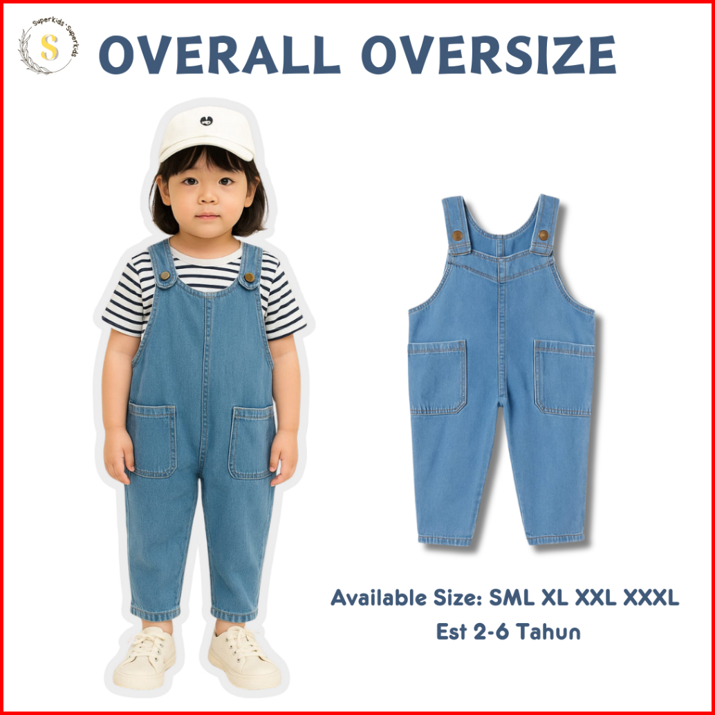 Kidssuper - Overall Jeans Anak Laki Laki Perempuan Usia 2-6 Tahun Jumpsuit Jeans Anak Cowok Cewek Overall Oversize