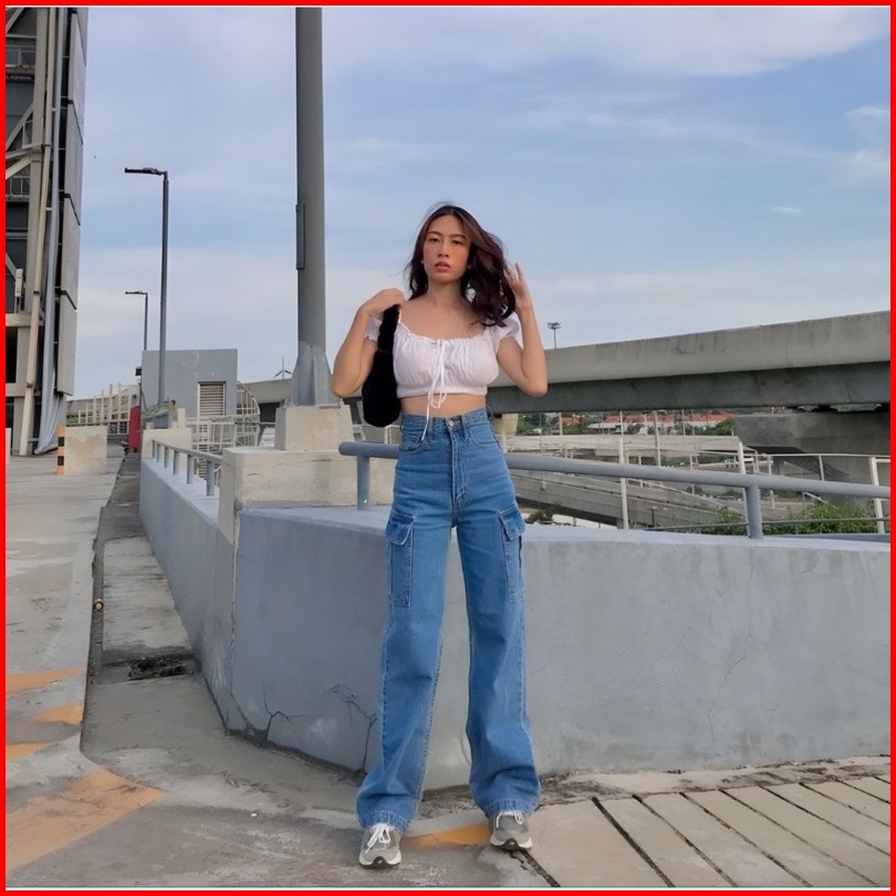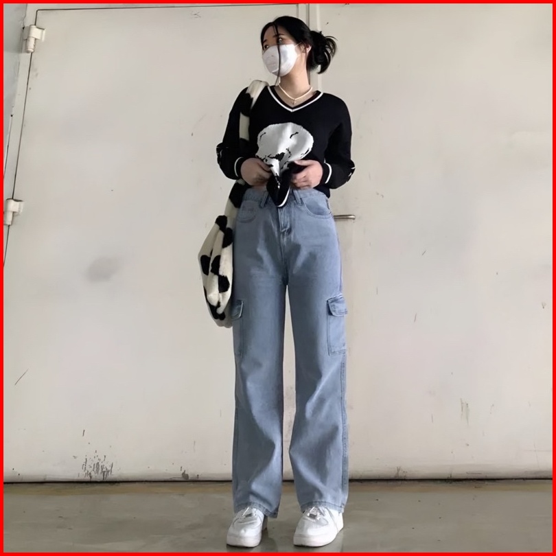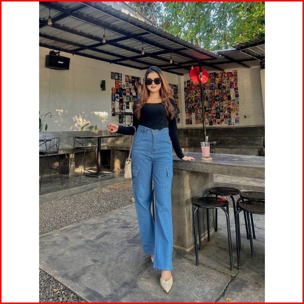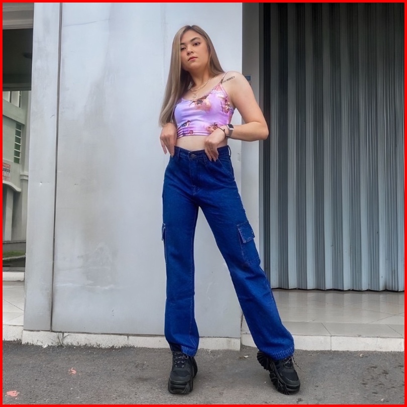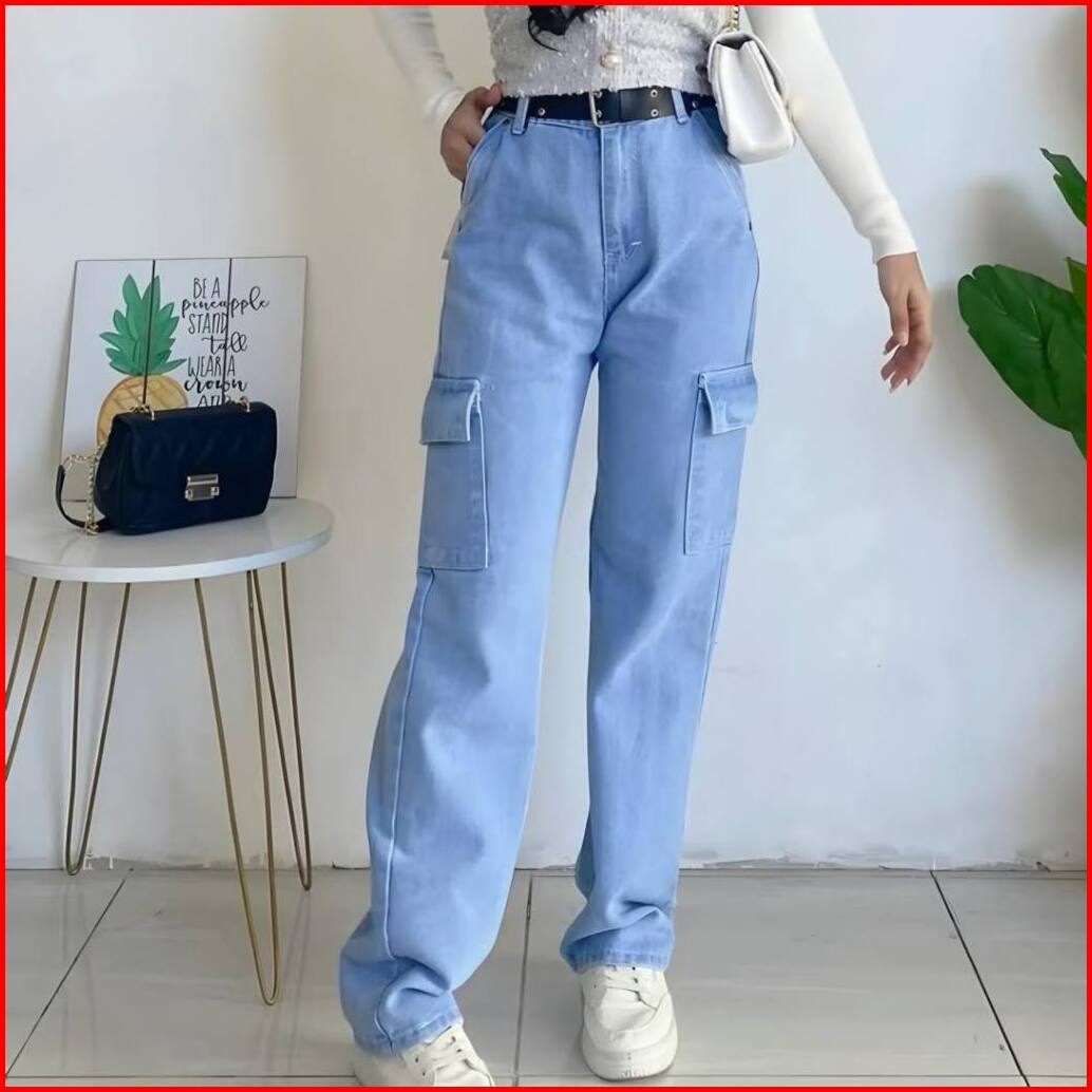 Celana Highwaist Cargo Jeans Loose Wanita Kulot Cargo Highwaist