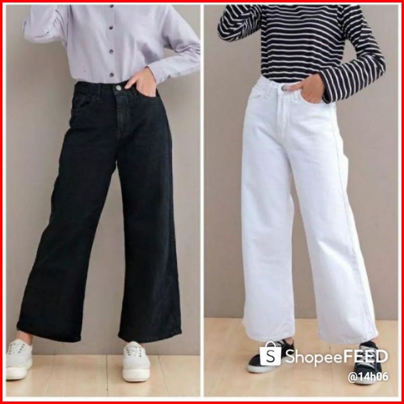 Bf Celana Kulot Jeans Cream Celana Bawahan Highwaist Kulot Warna