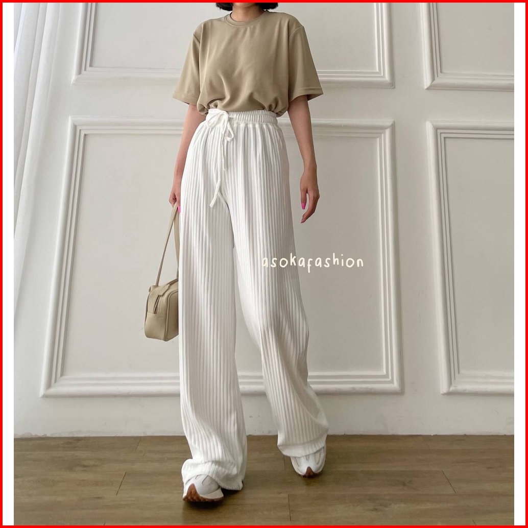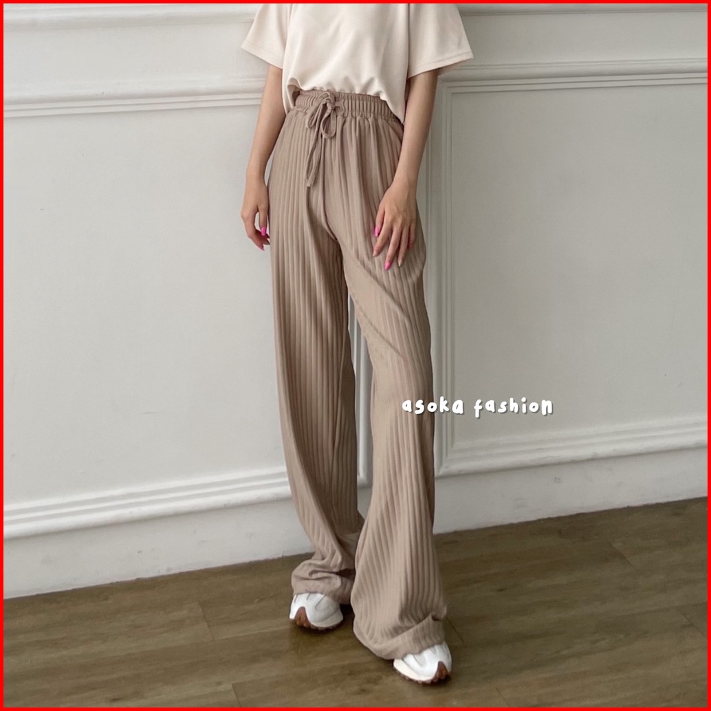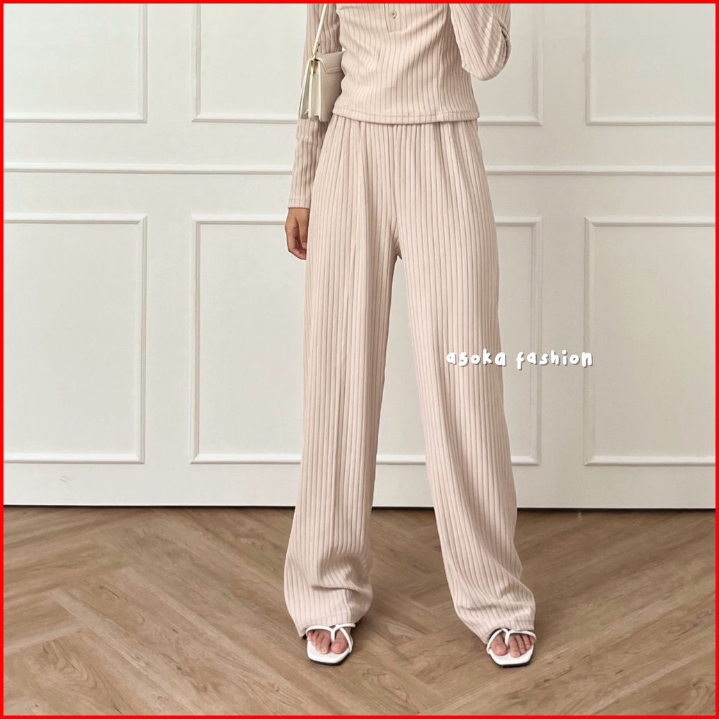 Asoka Lyra Pants 1106 - Celana Kulot Knit Rib Panjang - Highwaist Pants Women