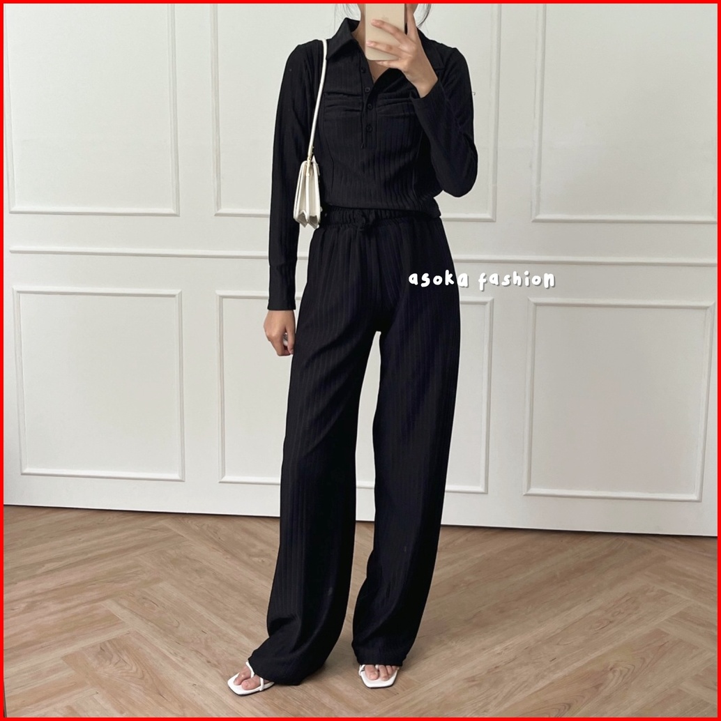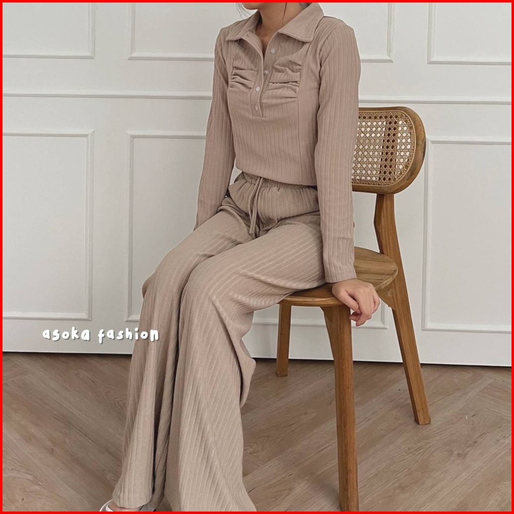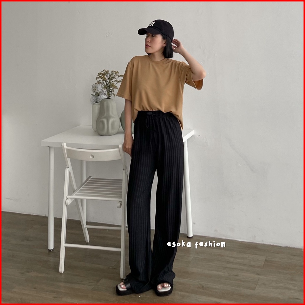 Asoka Lyra Pants 1106 - Celana Kulot Knit Rib Panjang - Highwaist Pants Women