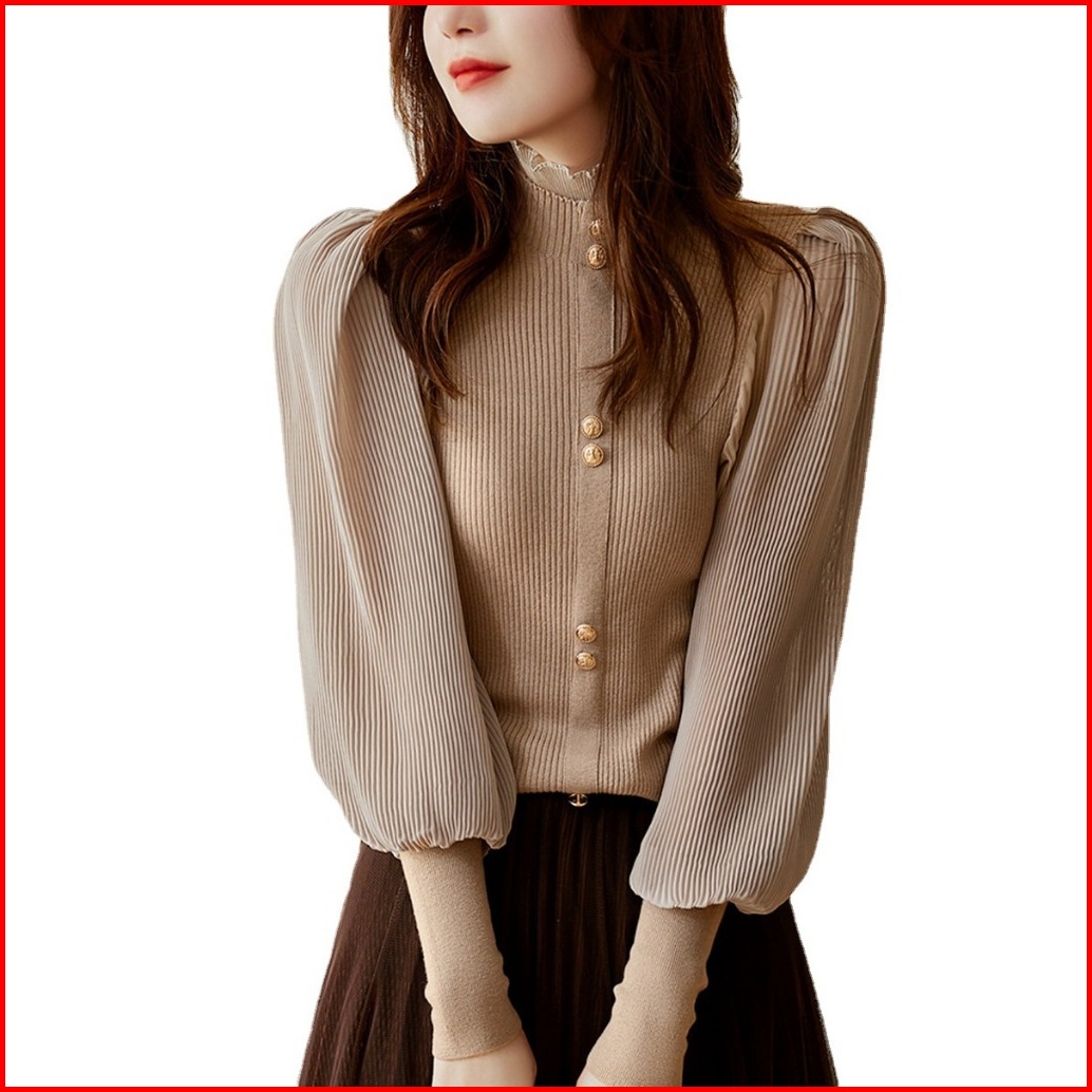 Atasan Knit Wanita Lengan Panjang Lengan Balon