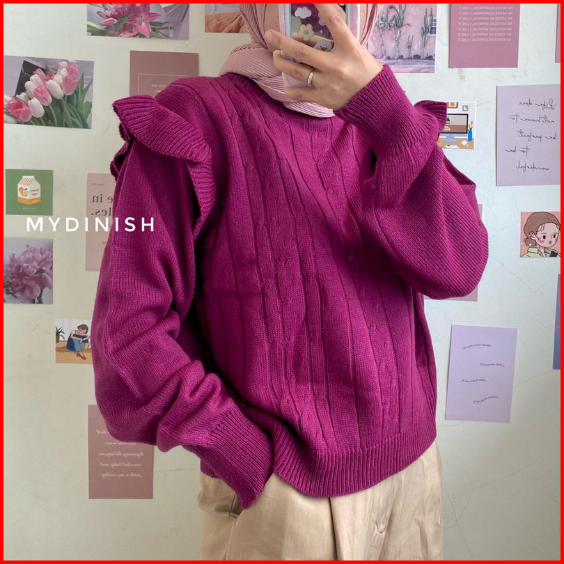 Fatira Ruffle Blouse - Atasan Rajut Wanita Motif Kriwil Kekinian