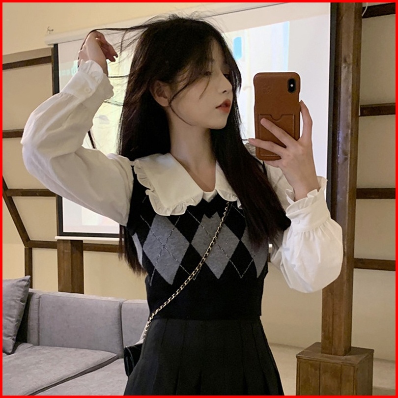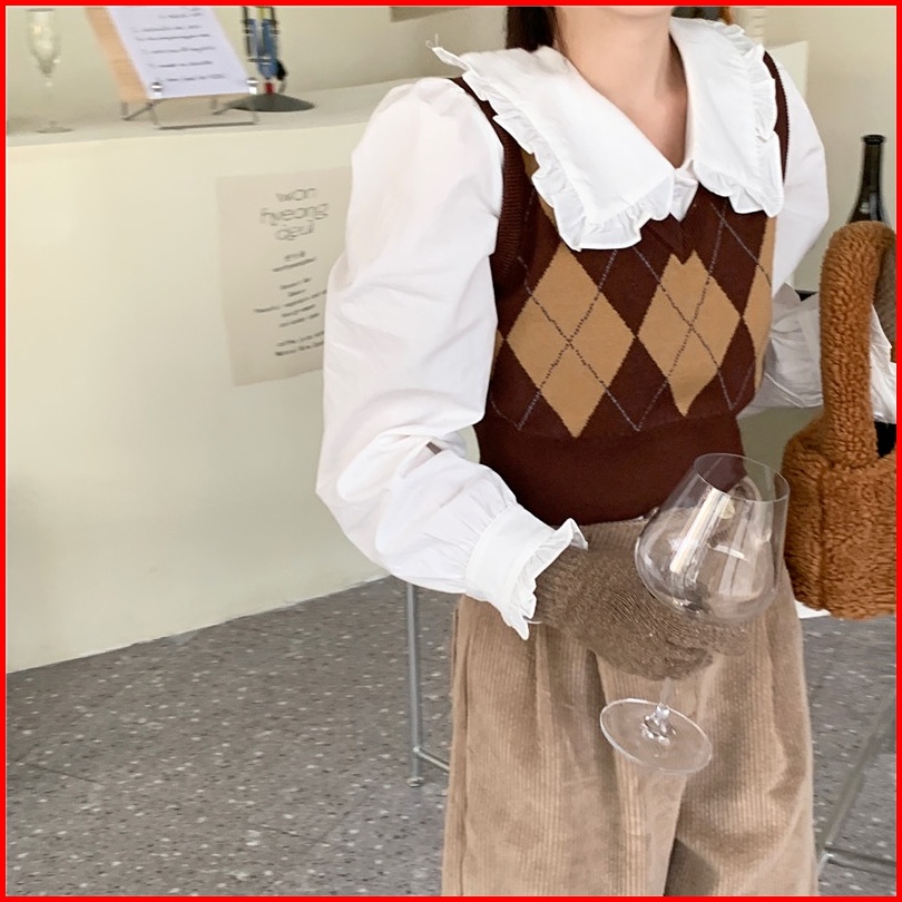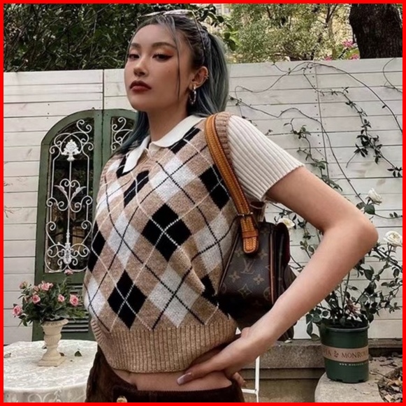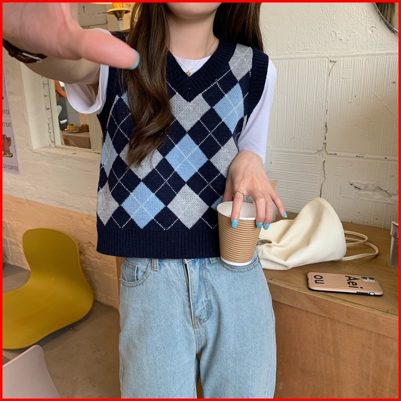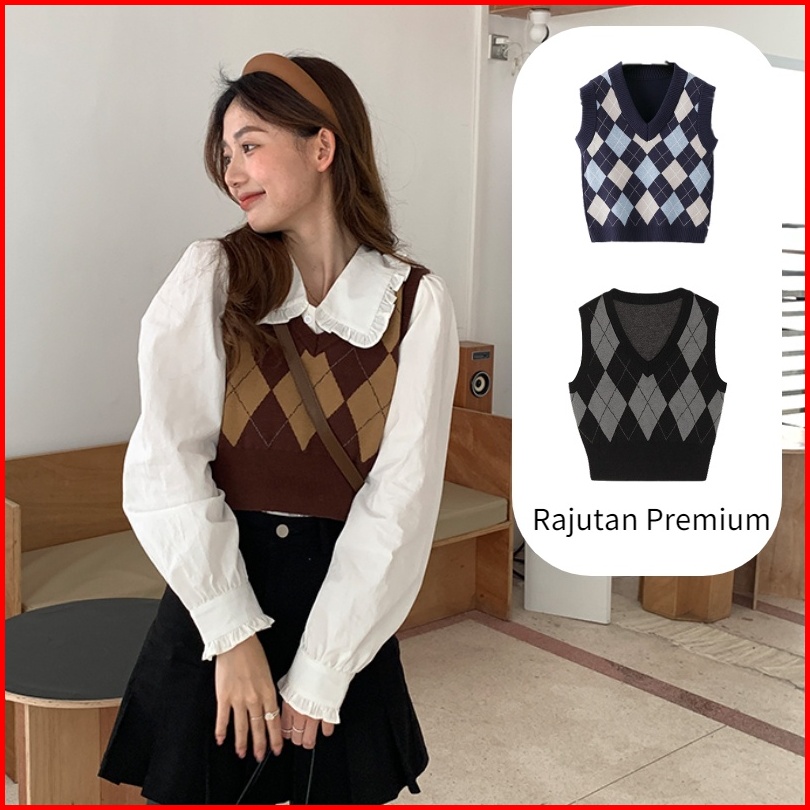 Knit Vest Kotak Rompi Rajut Wanita Vest Korea Crop Tee Vest Rajut