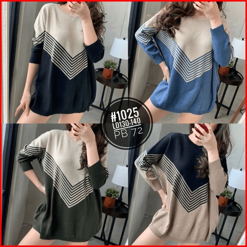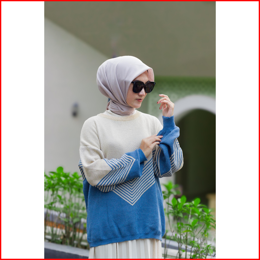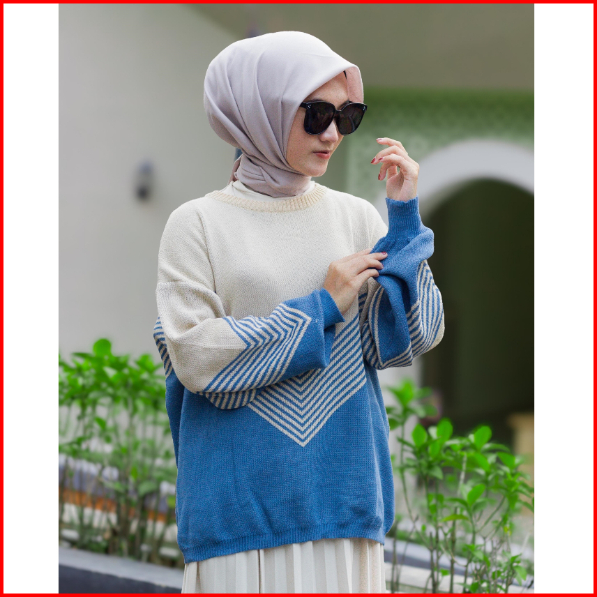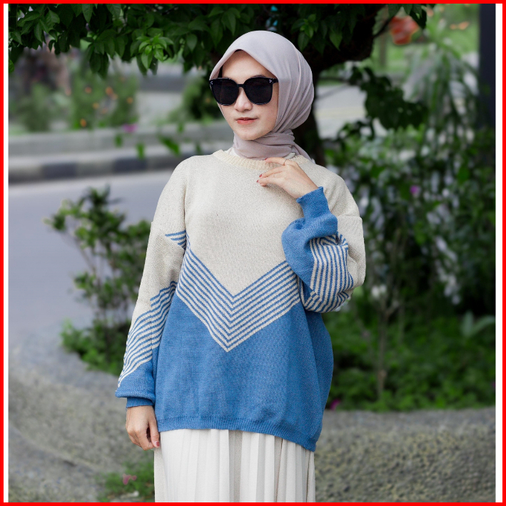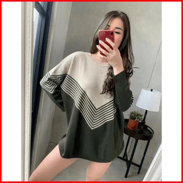Elzaya Bara Sweater Oversize - Baju Atasan Wanita Bahan Rajut Premium Tebal Motif Stripe - Sweater Terbaru