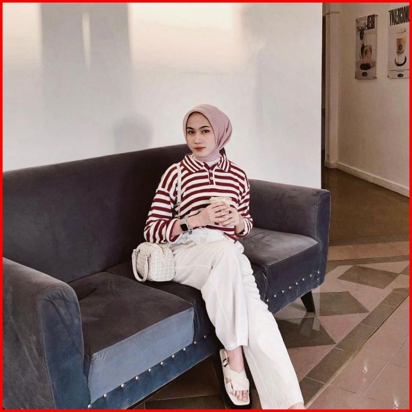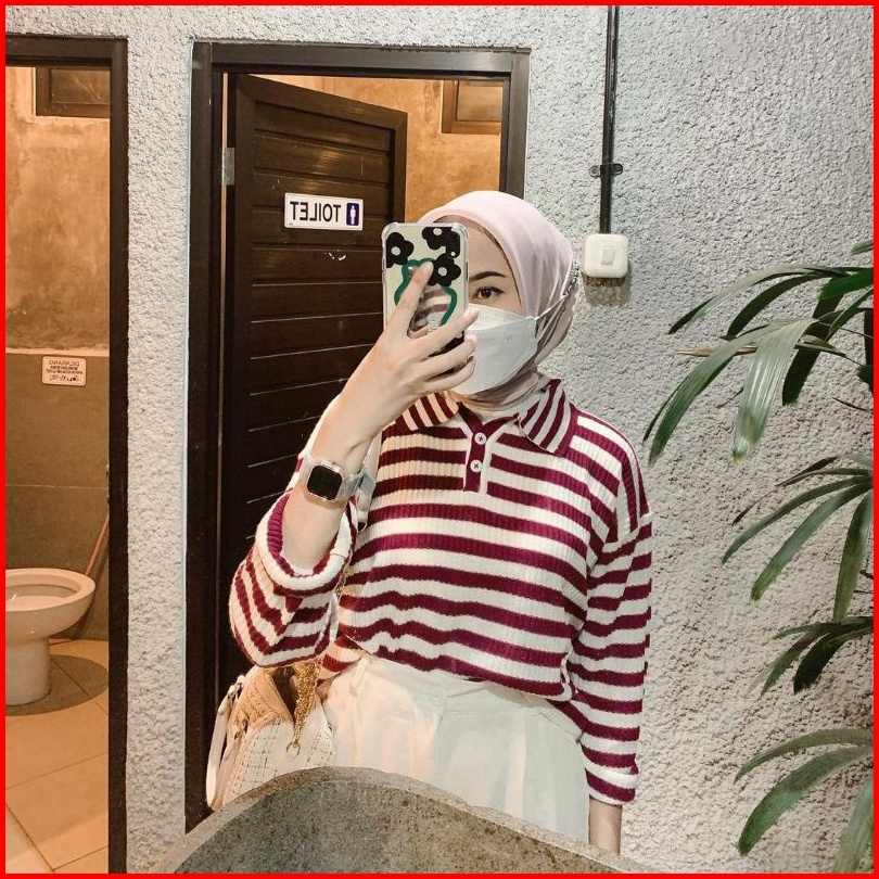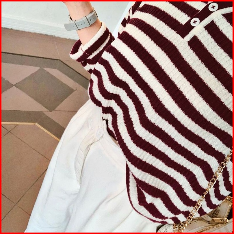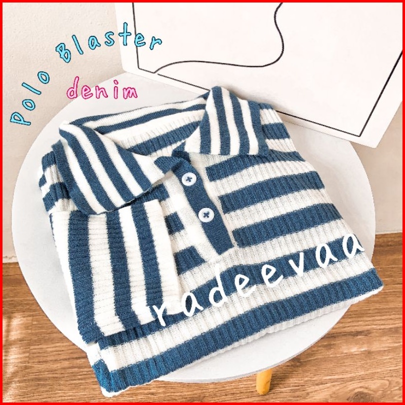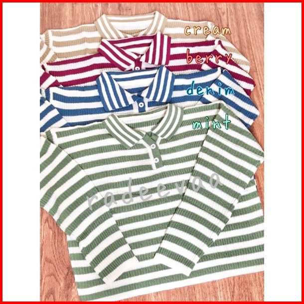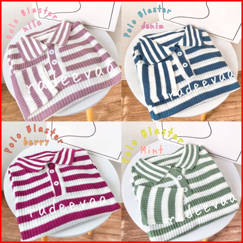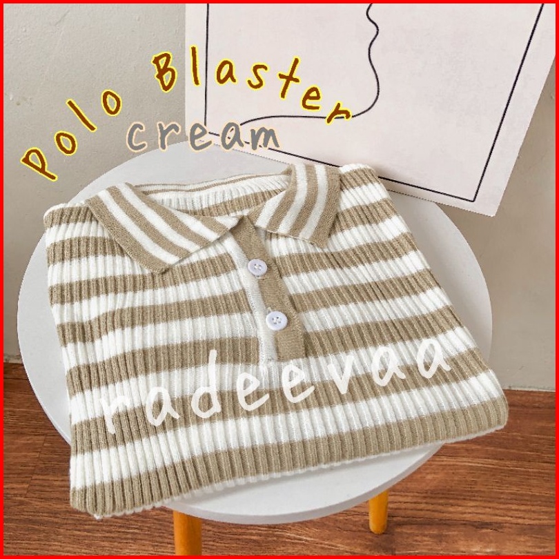 Polo Knit Top Blaster Crop Atasan Rajut Combo Stripe Tone Garis 2 Warna