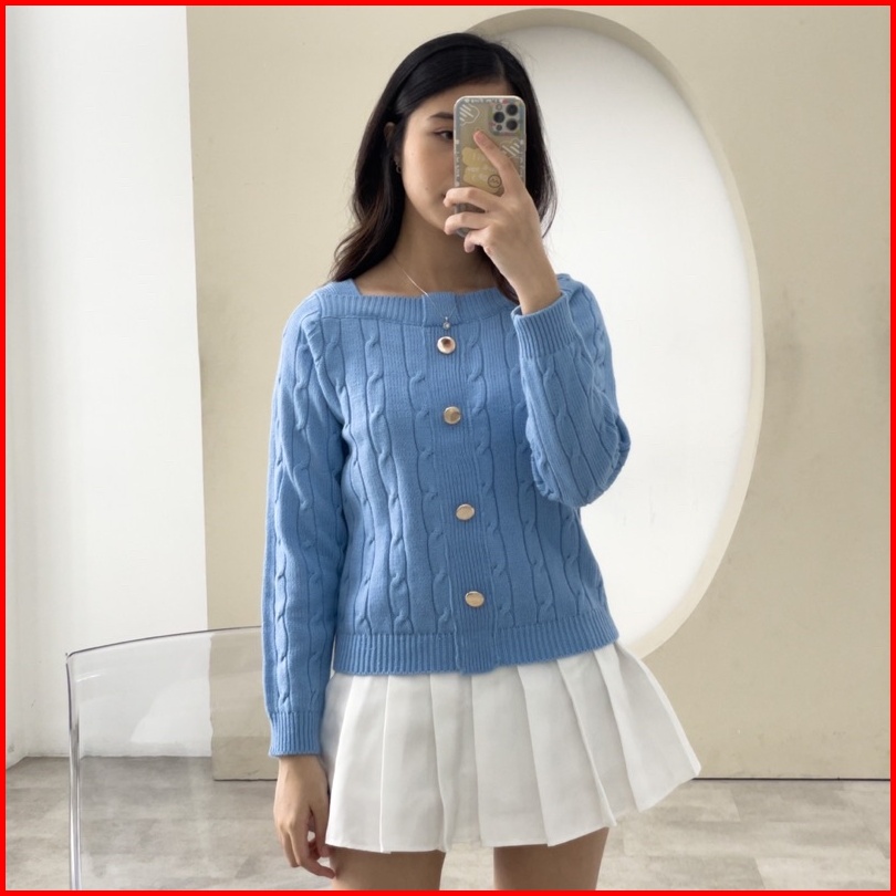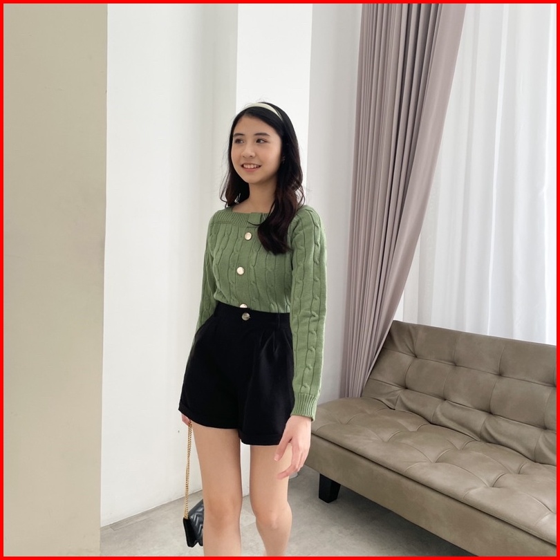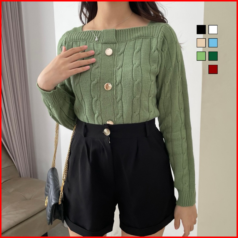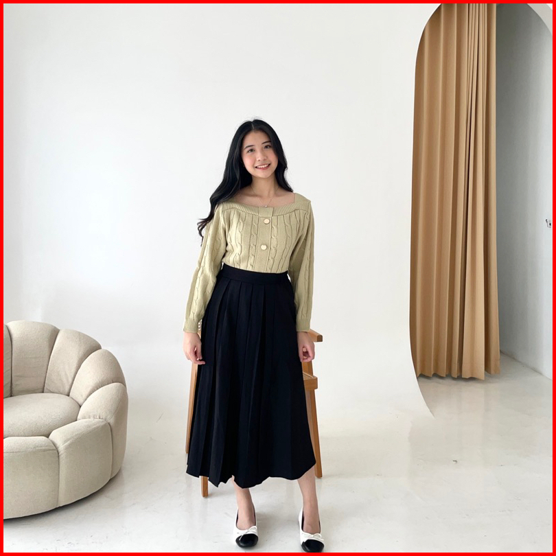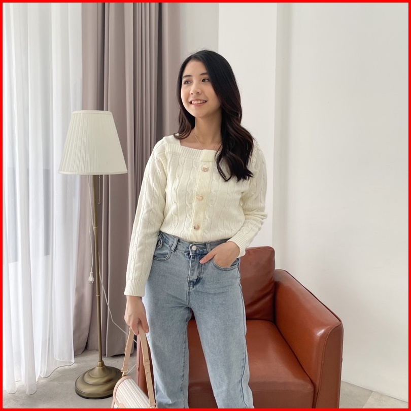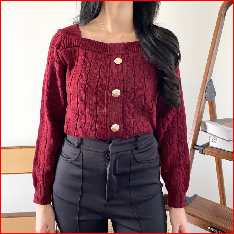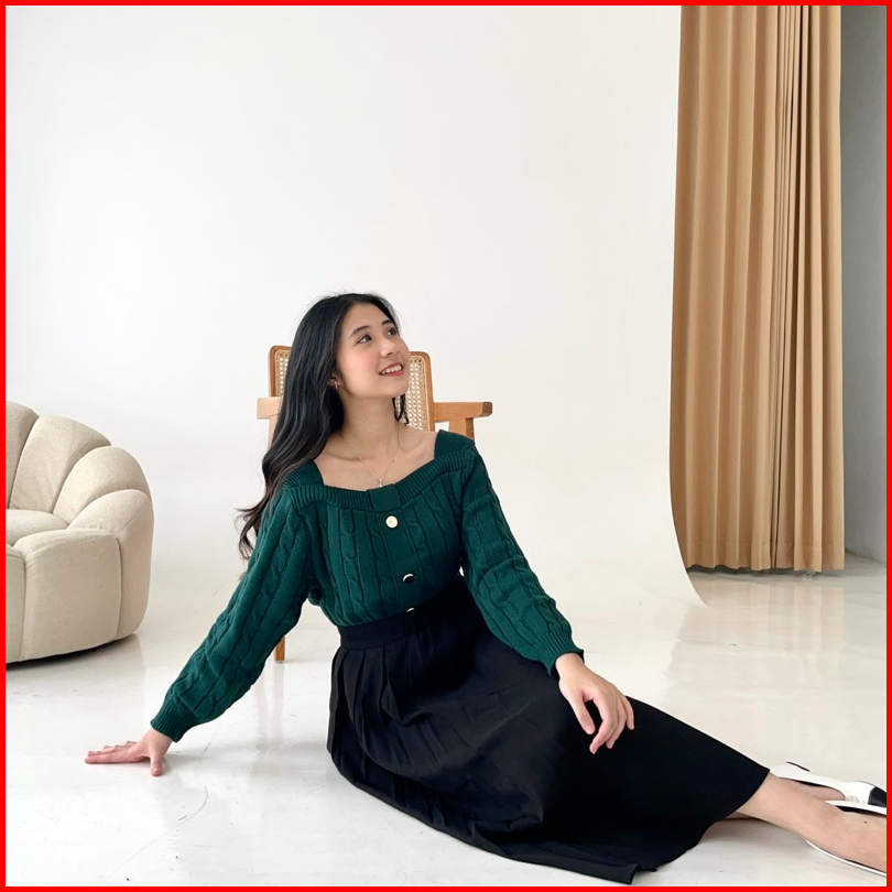 Needaknit Mia Atasan Wanita Korean Style Square Top Kekinian Rajut Knit Sweater Lengan Panjang