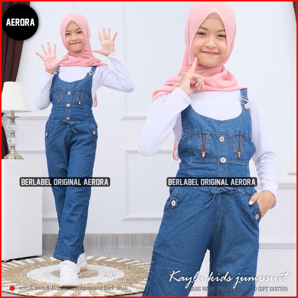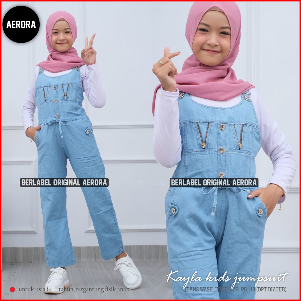 Aerora Baju Kodok Jumpsuit Overall Jeans Anak Perempuan Tanggung Usia 8 10 12 Tahun Zipper Cantik