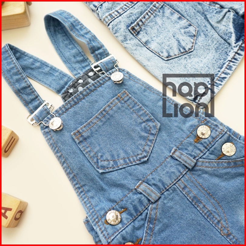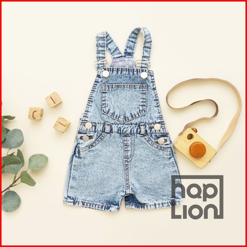 Overall Celana Pendek Jeans Anak Unisex Laki Perempuan 6 Bulan - 4 Tahun Baju Kodok Haplion Kidswear