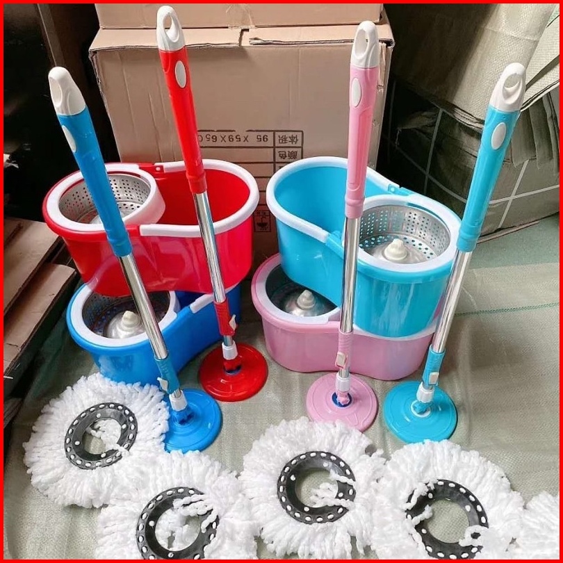 Aat Pel Lantai Spin Mop Dengan Ember Putaran Stenlis