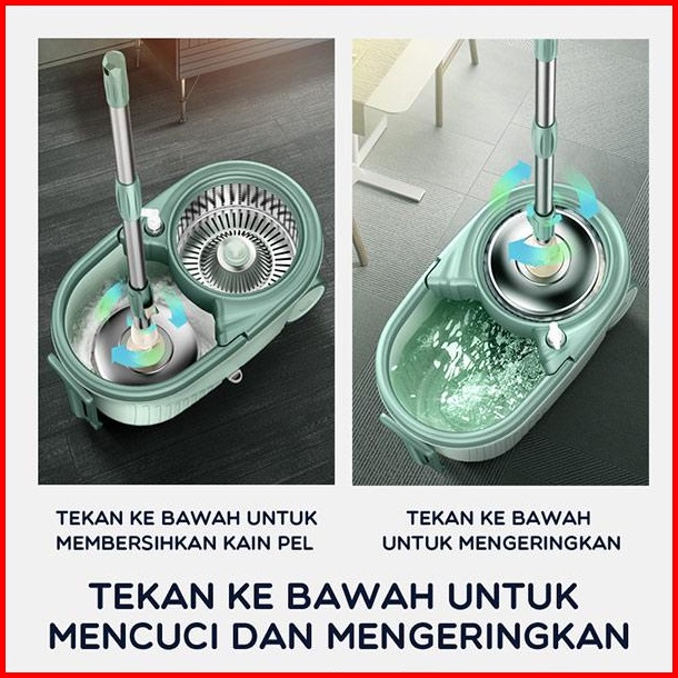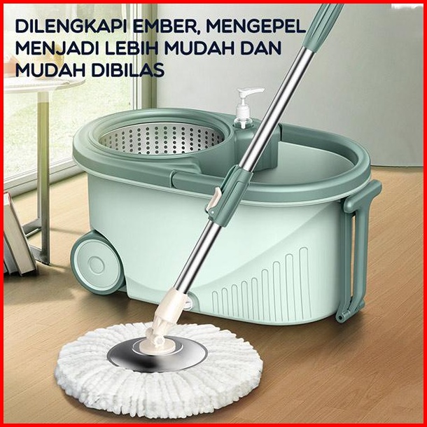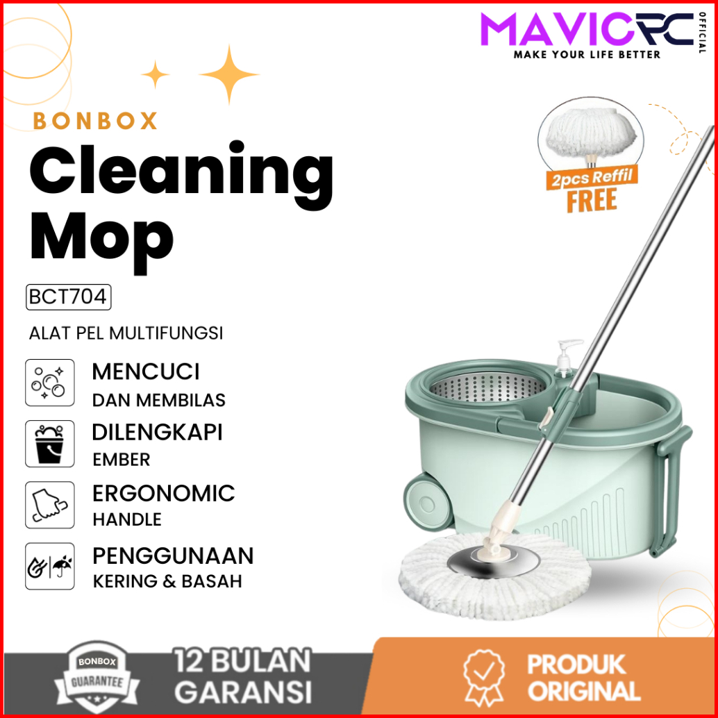 Bonbox Bct704 Alat Pel Lantai Kain Ultra Spin Mop Tongkat Kain Pel Lantai Putar Dengan Ember Roda Alat Pembersih Lantai
