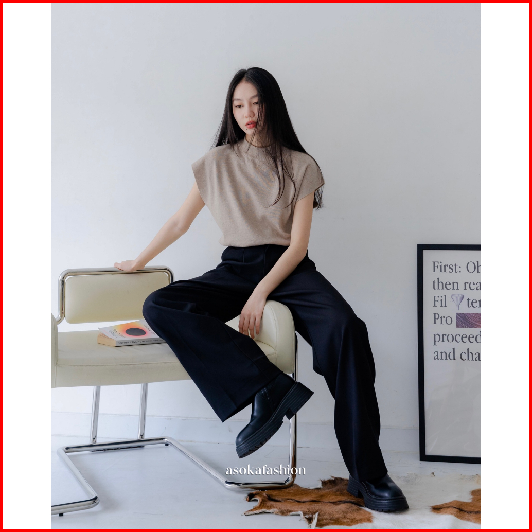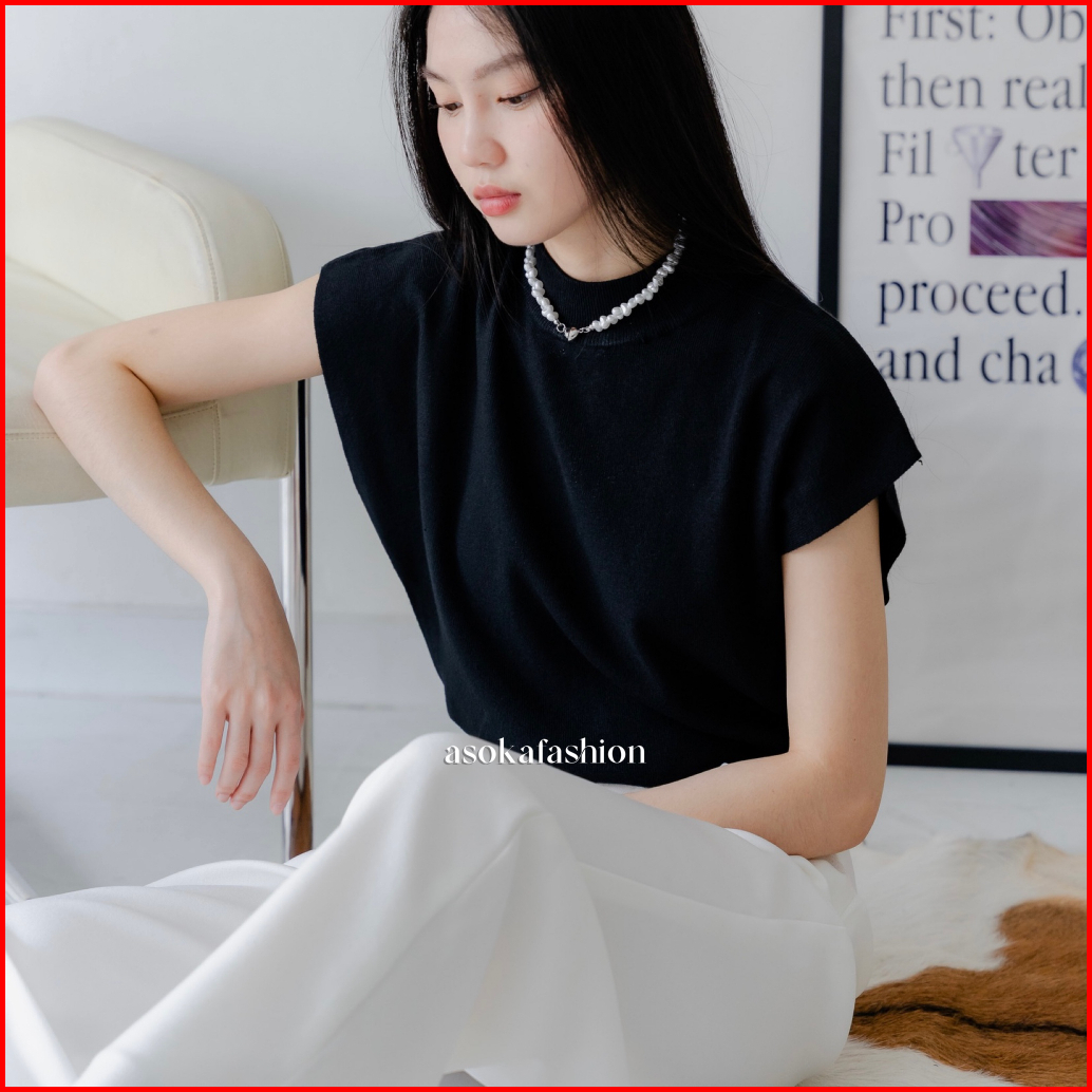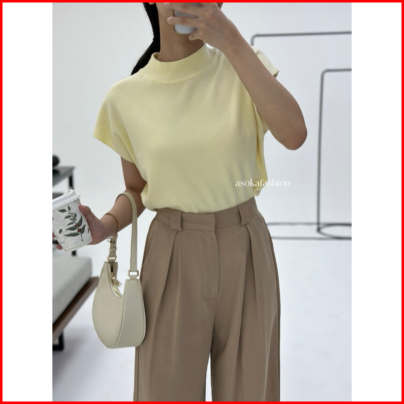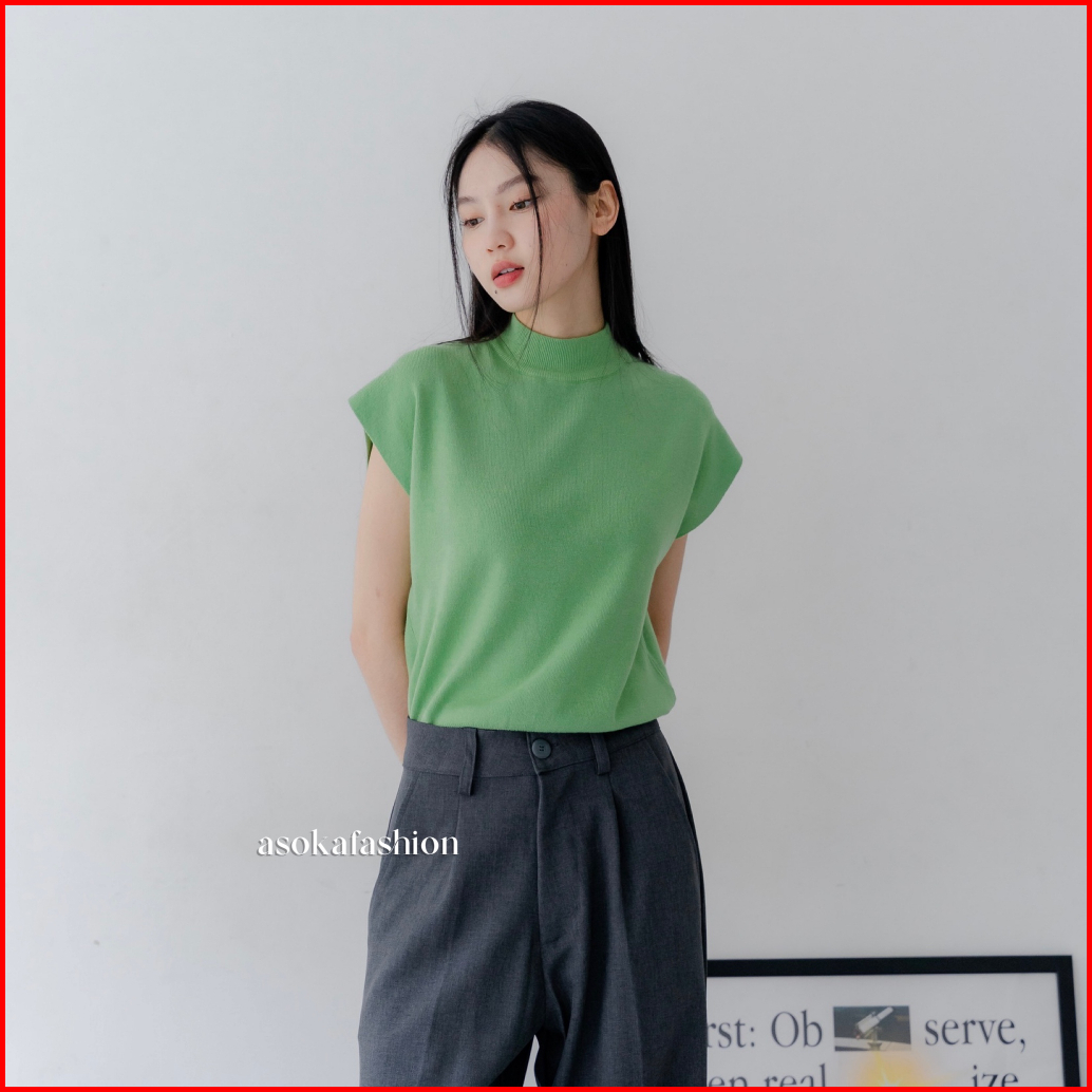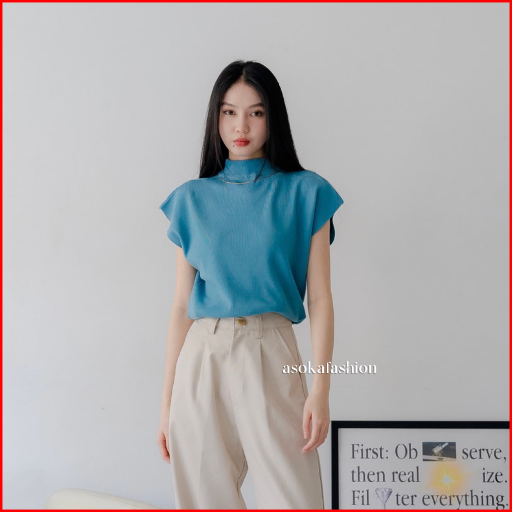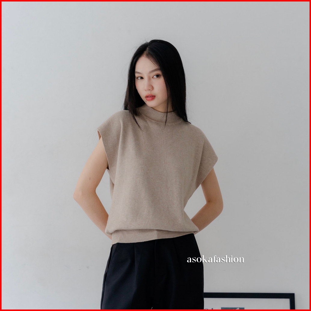 Asoka Calni Knit Top 2189 - Atasan Wanita Rajut - Baju Wanita Vest Knit Turtleneck Tanpa Lengan - Inner Hijab