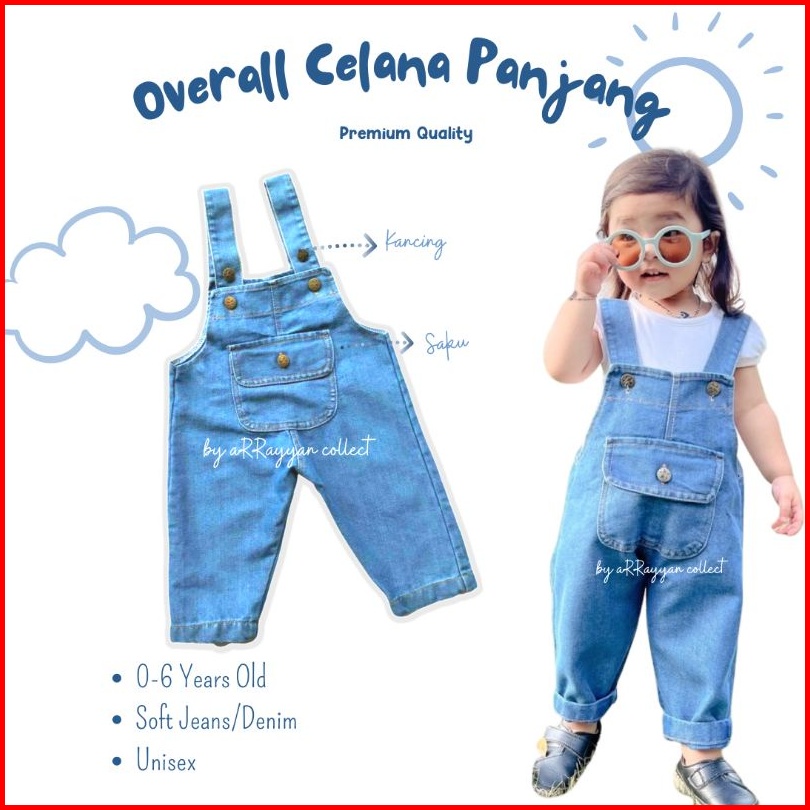 Baby Overall Jeans Panjang Anak Baju Kodok Jeans Anak Overall Celana Panjang Anak Unisex 0-6thn