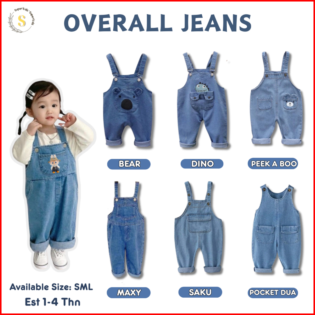 Kidssuper Overall Panjang - Overall Jeans Anak Jumpsuit Anak Cowok Dan Cewek Pakaian Anak Usia 1-4 Tahun
