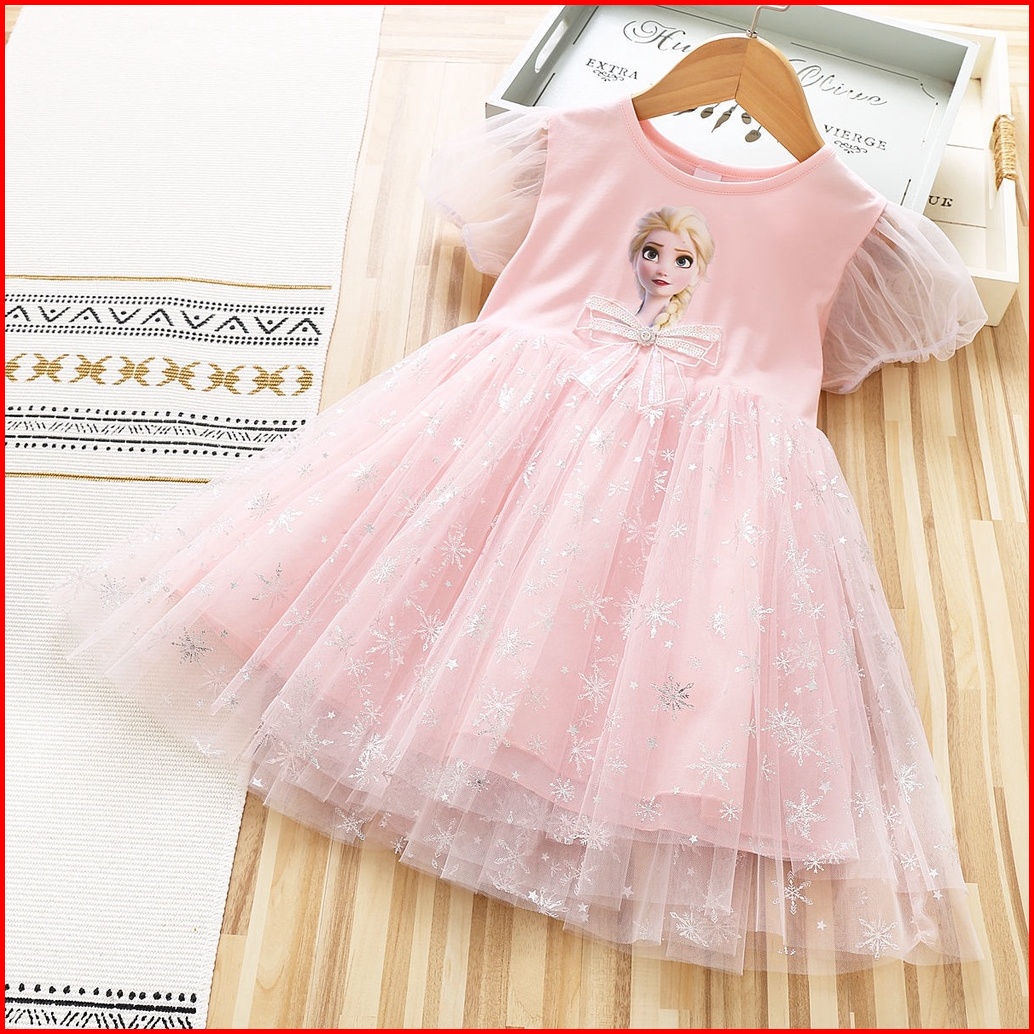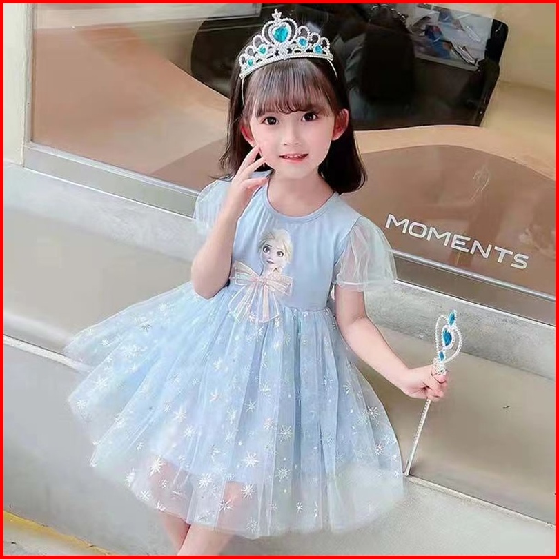 Princesscoco 1-9 Tahun Dress Frozen Pita Anak Perempuan Katun Kids Baju Princess Elsa