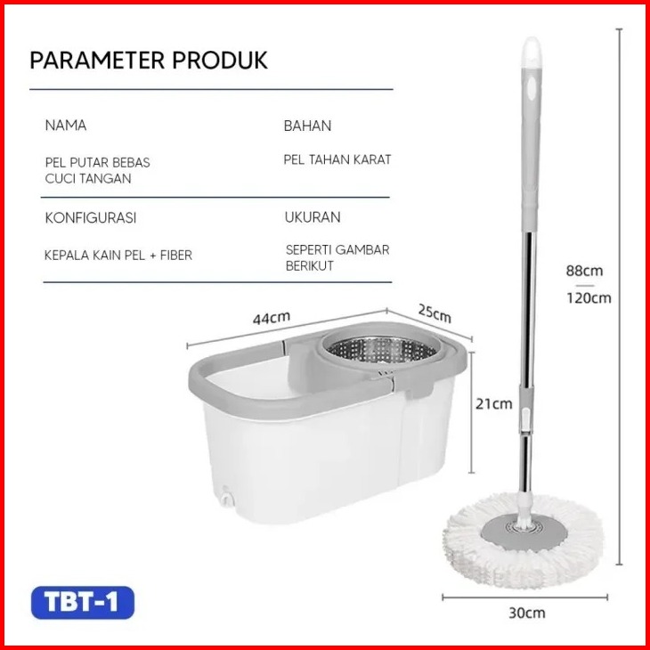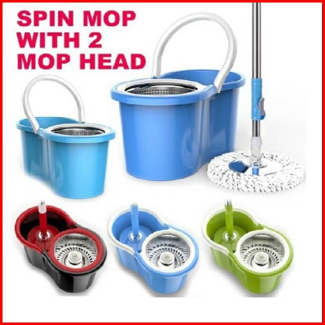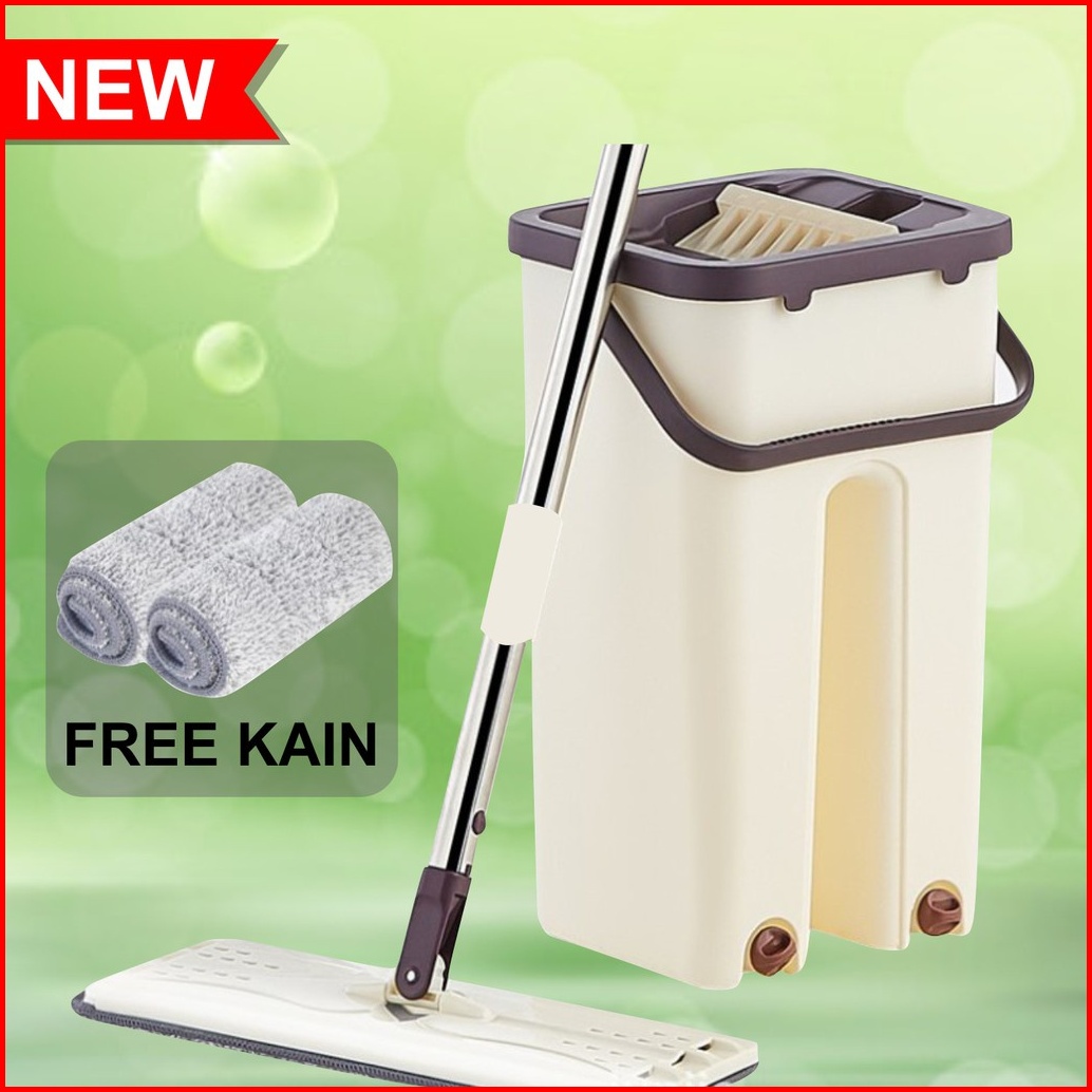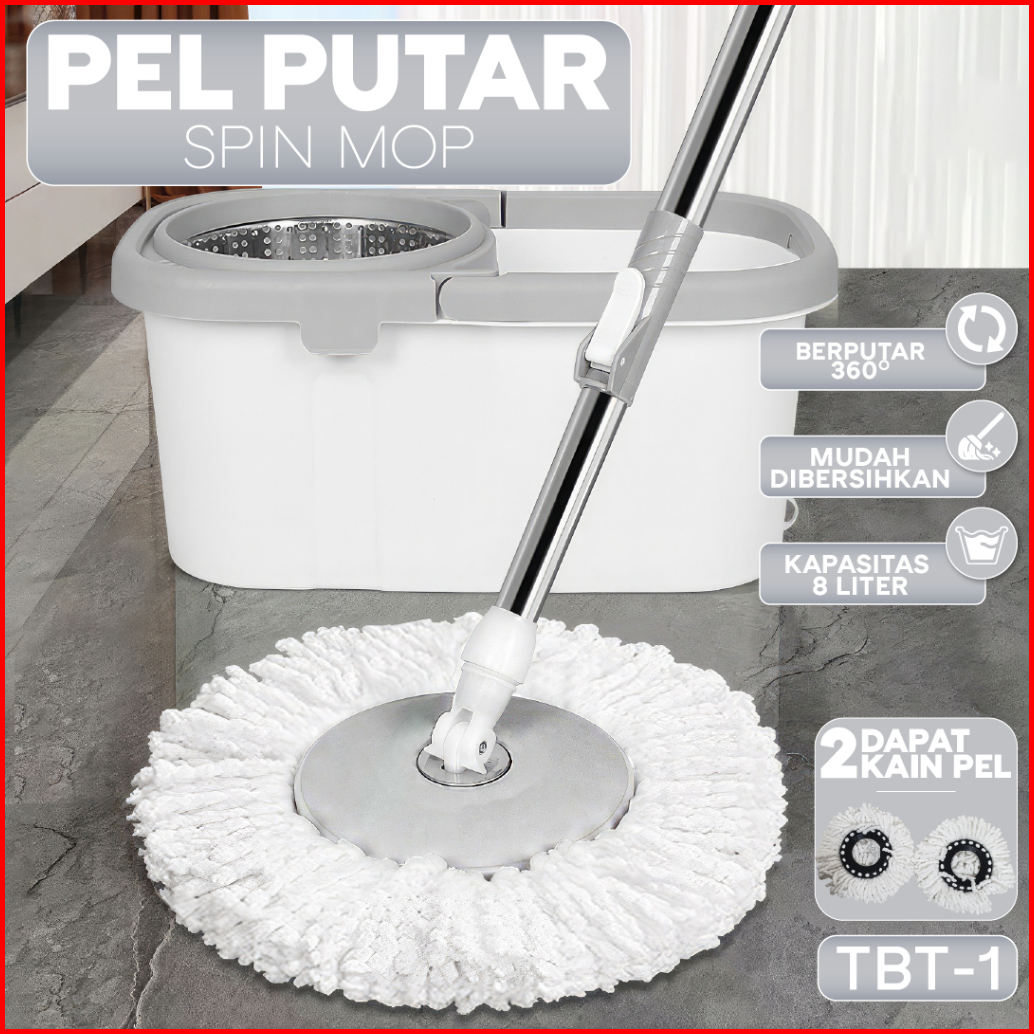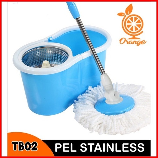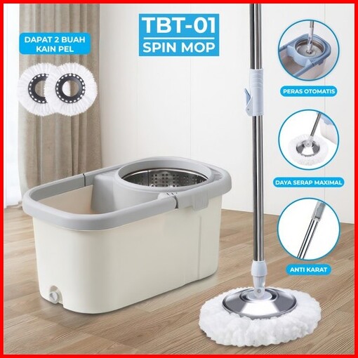 Gratis 1 Kain Pel Spin Mop Pengering Stainless Anti Karat Berputar 360 Derajat Kain Microfiber