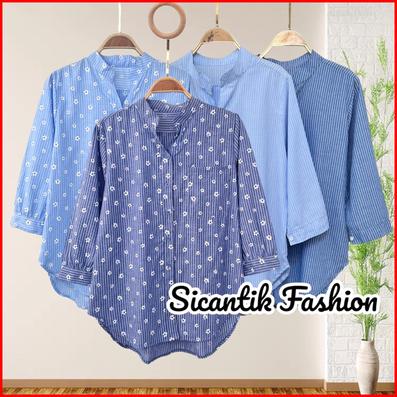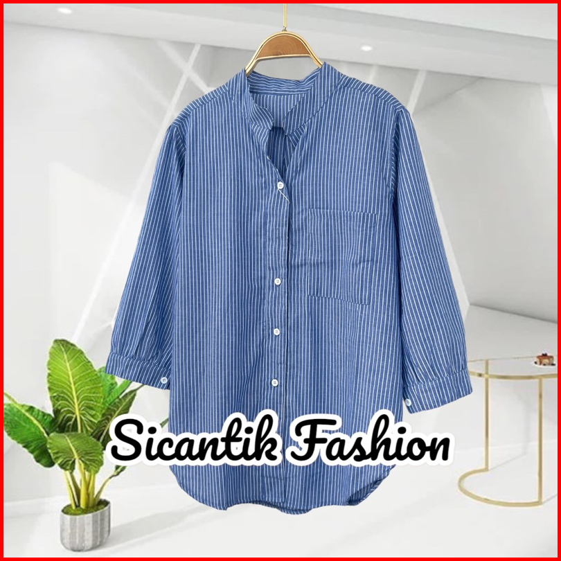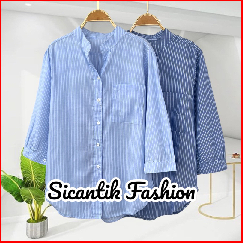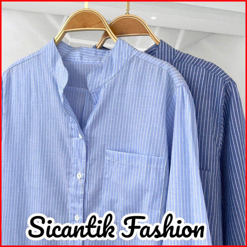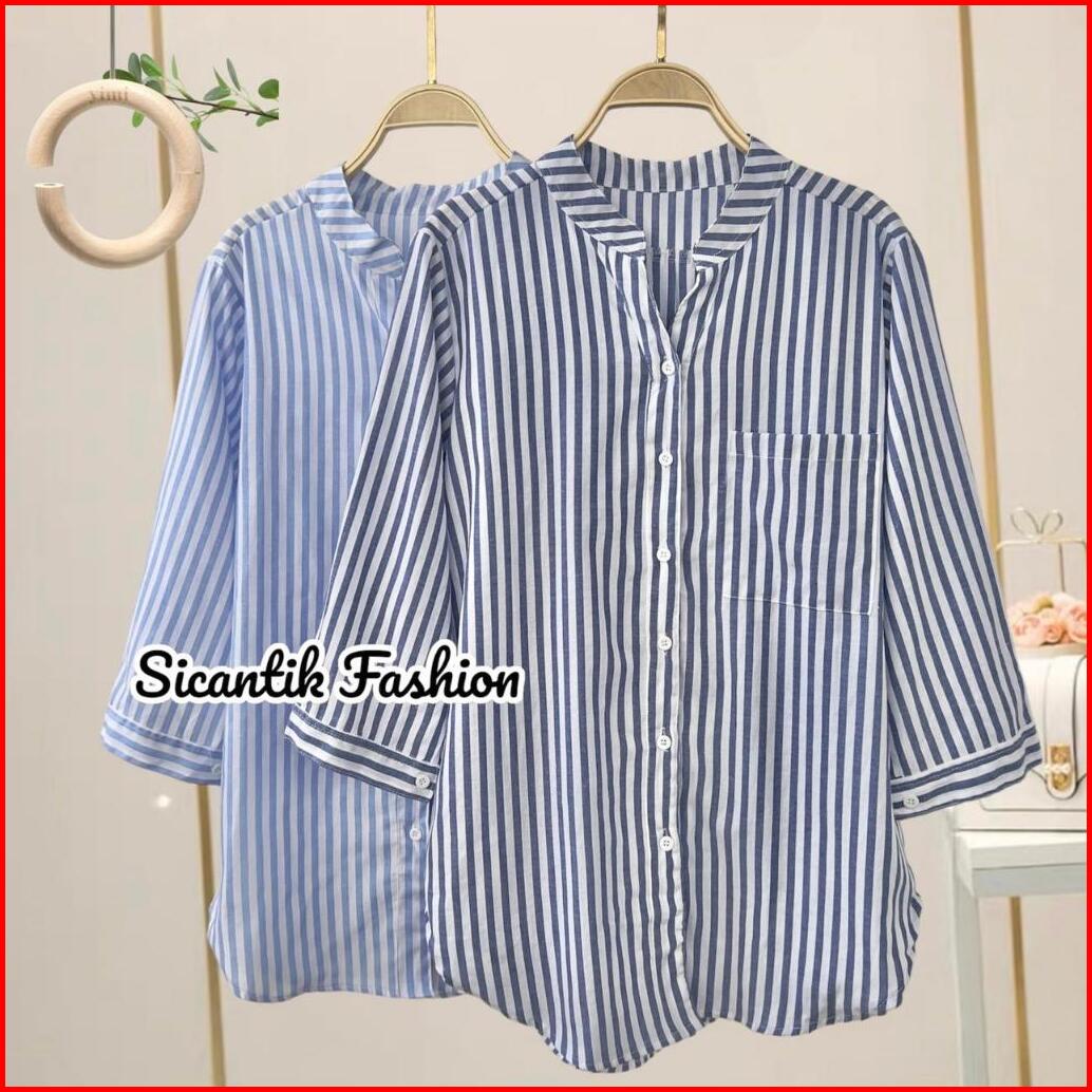 Atasan Salur Wanita Kemeja Strip Fashion Cewek Salur Korean Style Atasan Cewek Oversize