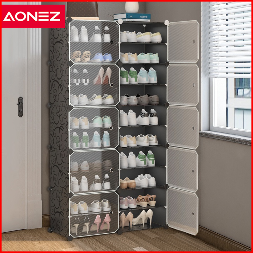Codaonez Outelts Rak Sepatu Tertutup Anti Debu Rak Transparan Portable 10 Susun Kotak Sepatu Rak Sepat Kotak Sepatu Tran