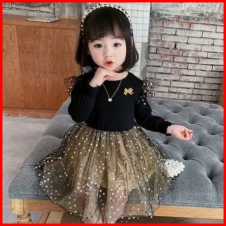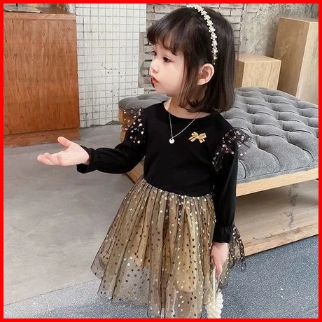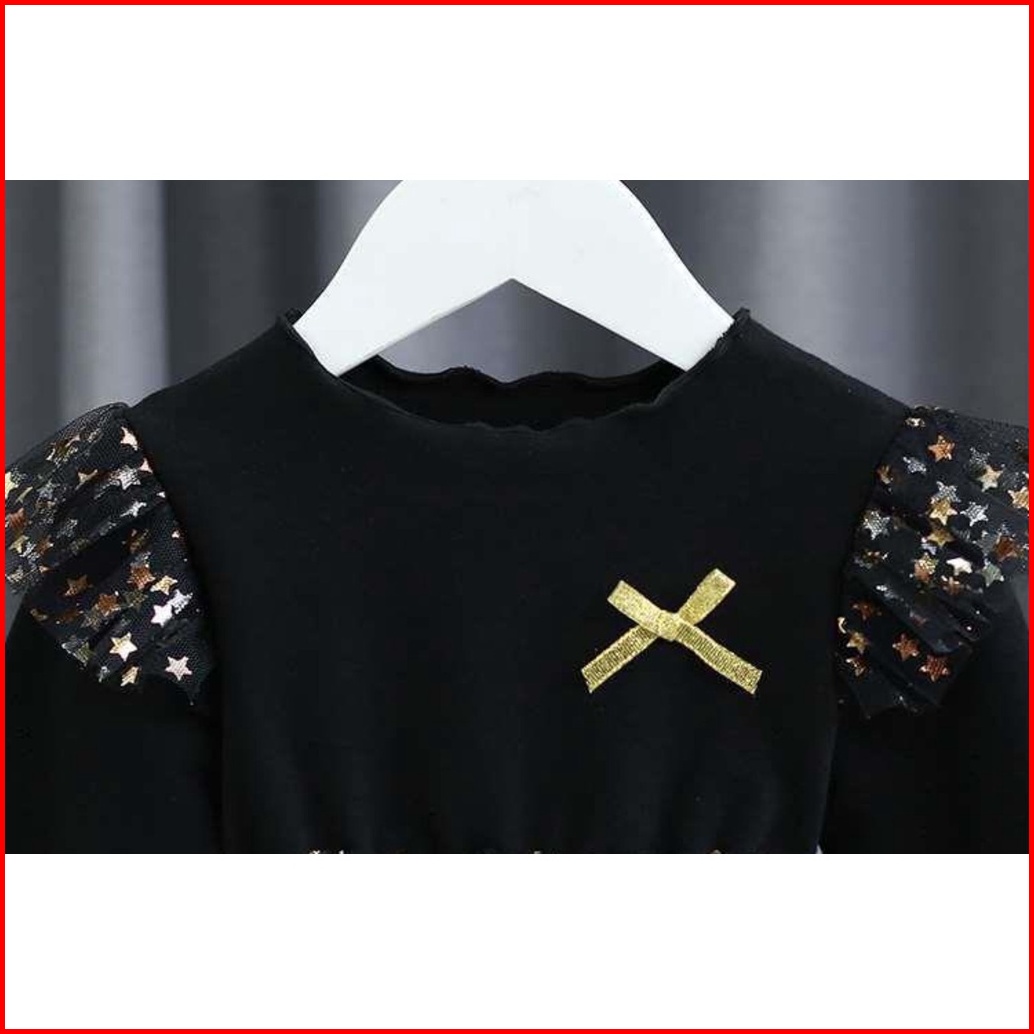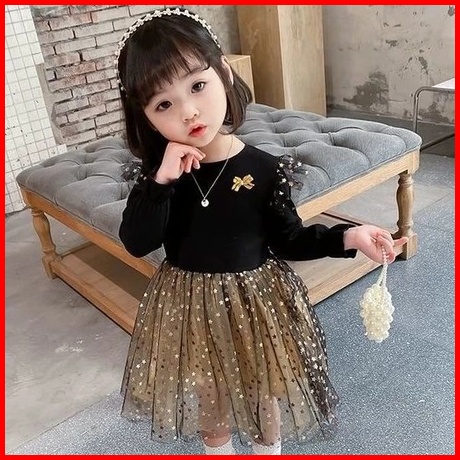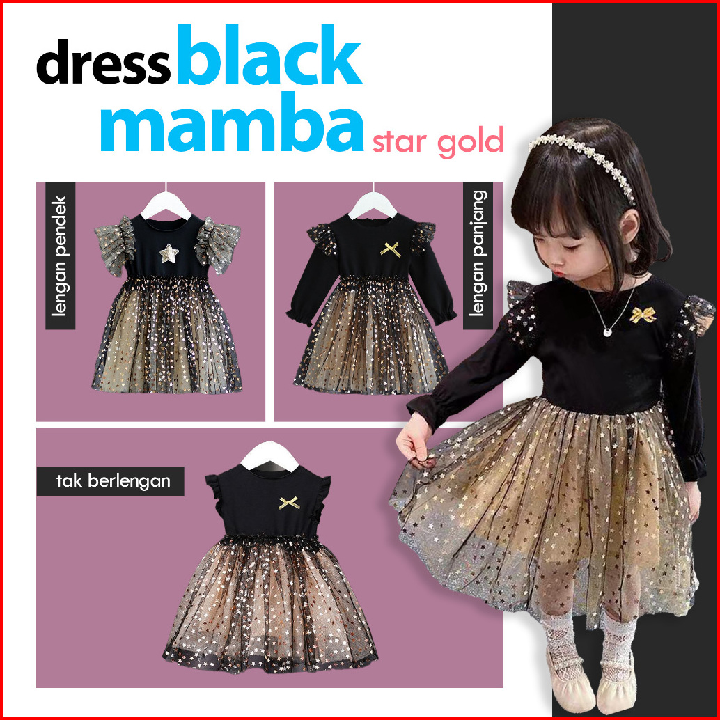 Princesscoco 0-7 Tahun Dress Anak Pesta Black Mamba Star Long Perempuan Gaun Hitam Rok Tile Lengan Panjang Kids