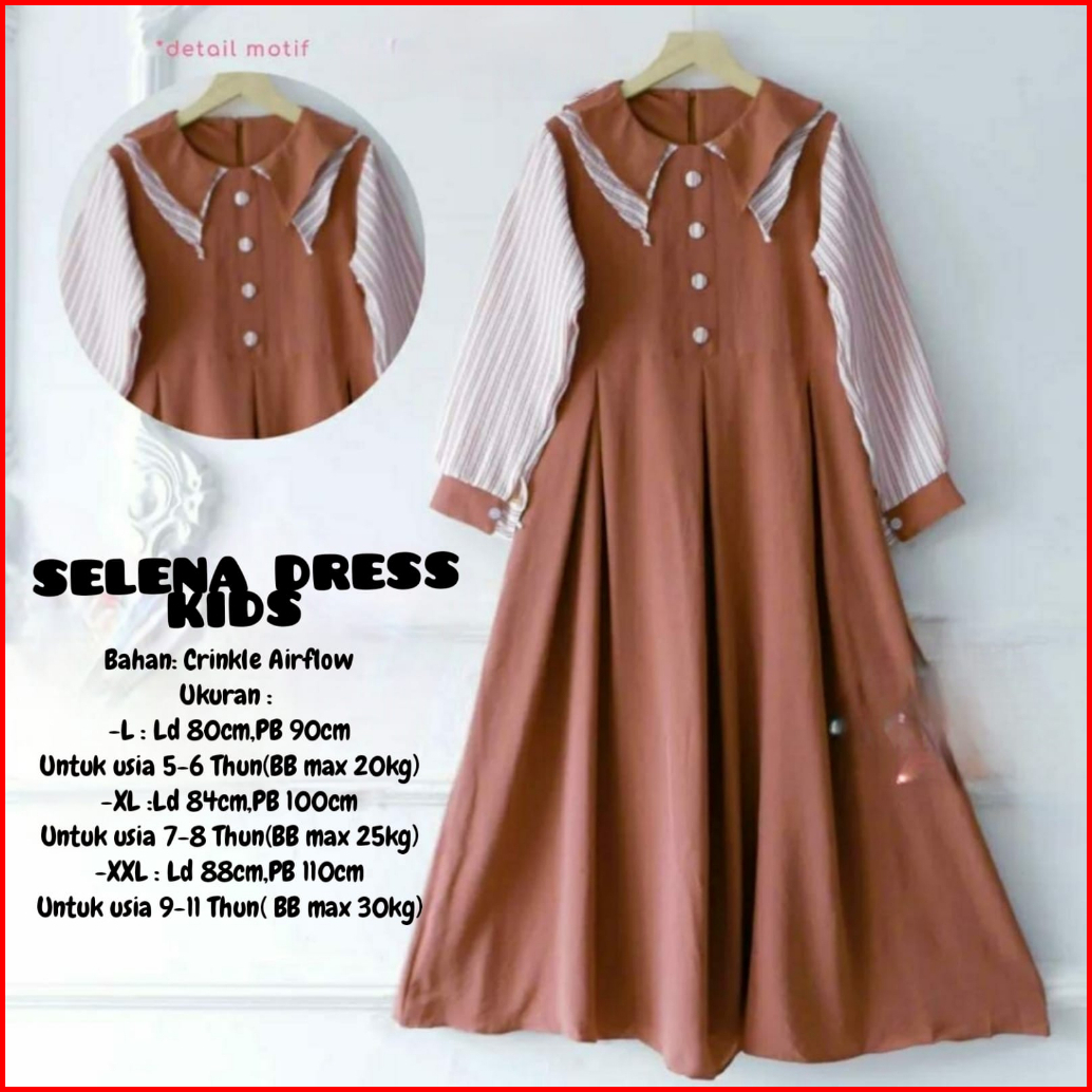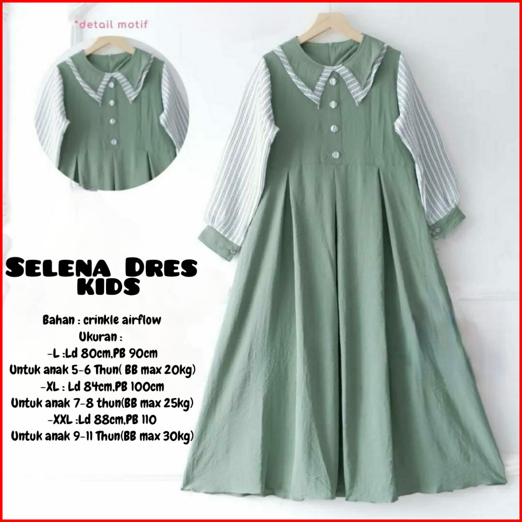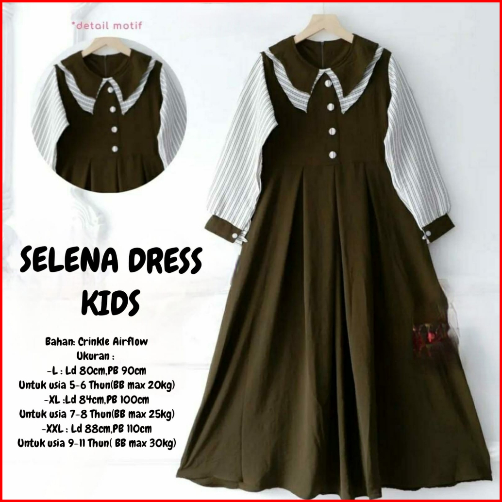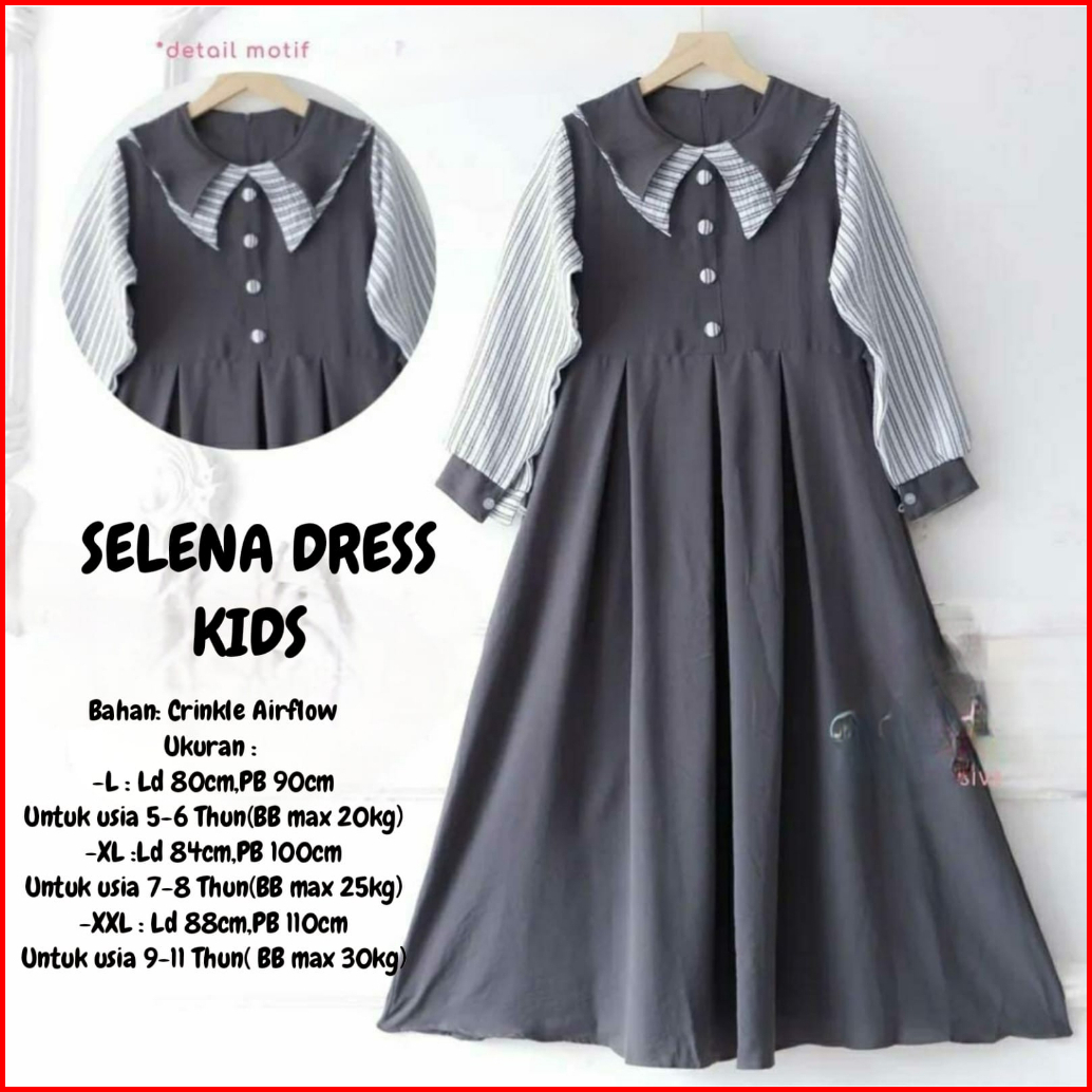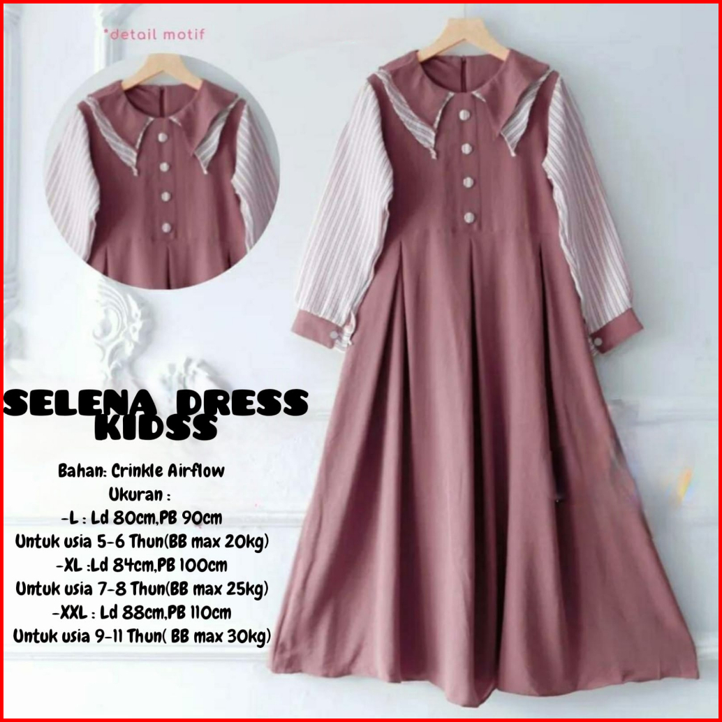 Selena Dress Kids Gamis Anak Terbaru Bahan Crinkle Dres Lebaran Viral