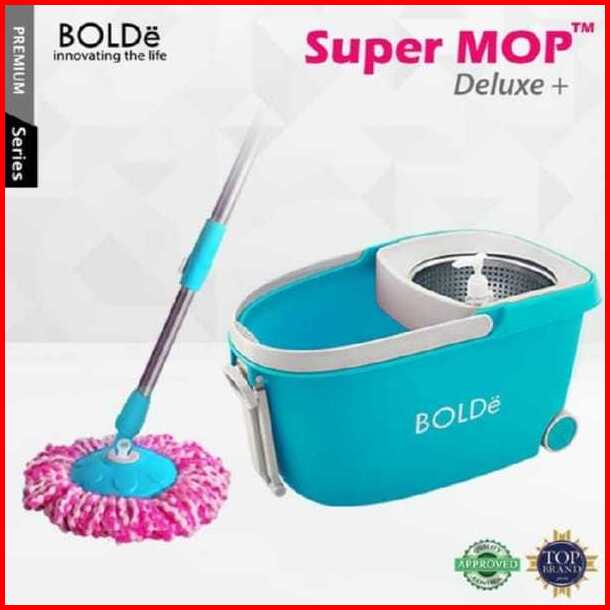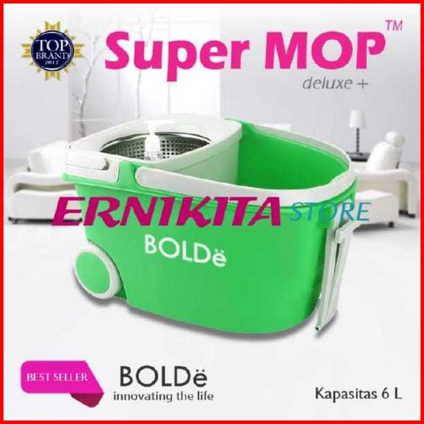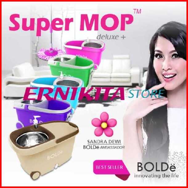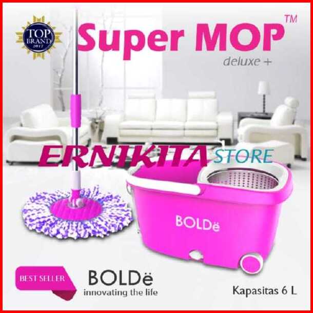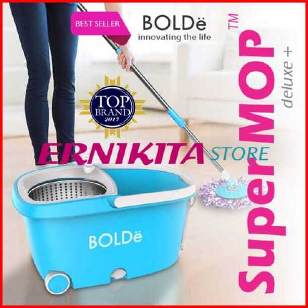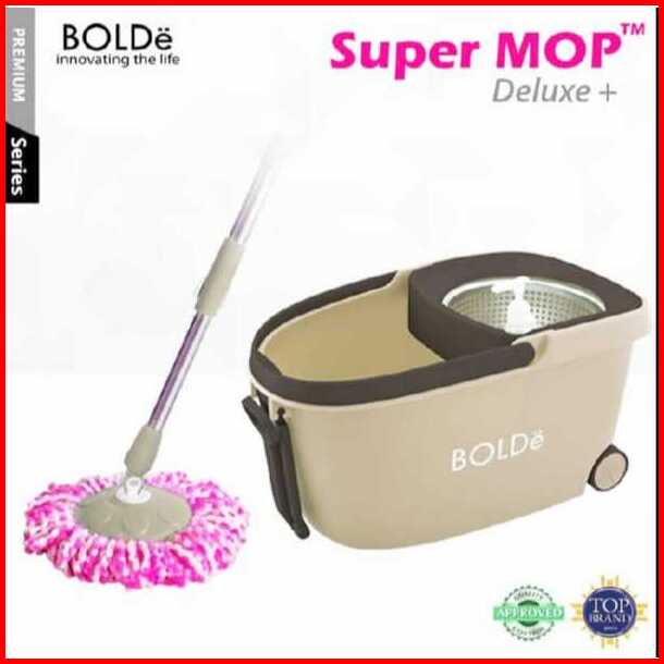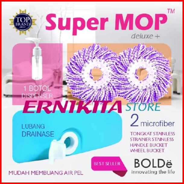 Alat Pel Bolde Super Mop Deluxe Plus 6l Penarik Roda Drainase Saringan Stainless Microfiber 2 Pcs