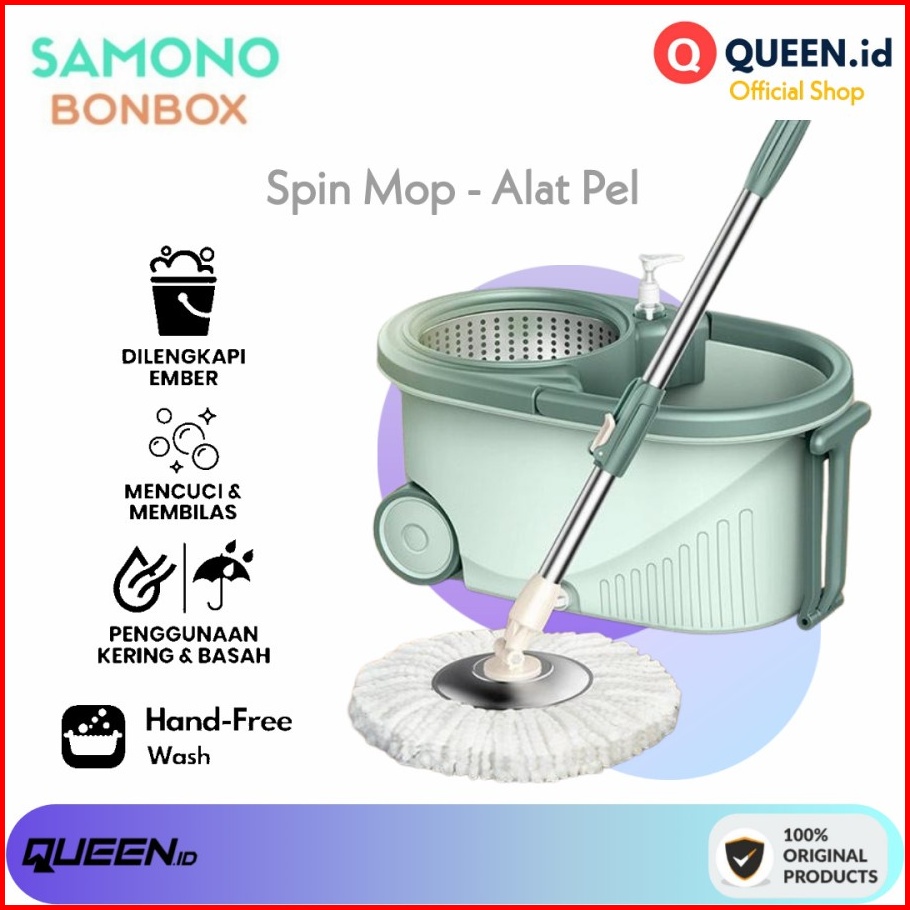 Samono Bonbox Scm003 Bct704 Alat Pel Lantai Ultra Spin Mop Set Ember Roda - Alat Tongkat Kain Pel Dan Ember Roda 1 Set B