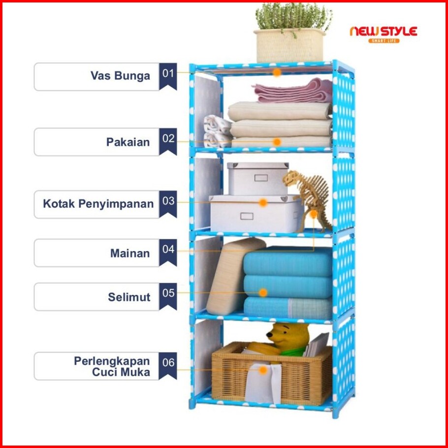 Gs Rak Buku 5 Tingkat 4 Susun Serbaguna Lemari Portable Multifungsi Kamar Sepatu Baju Dapur Kamar Mandi