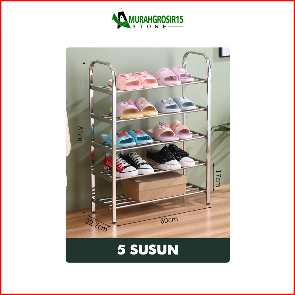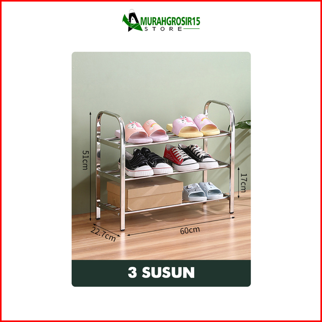Ge-9 Rak Sepatu Stainless Steel Multifungsi Rak Susun Rak Sandal