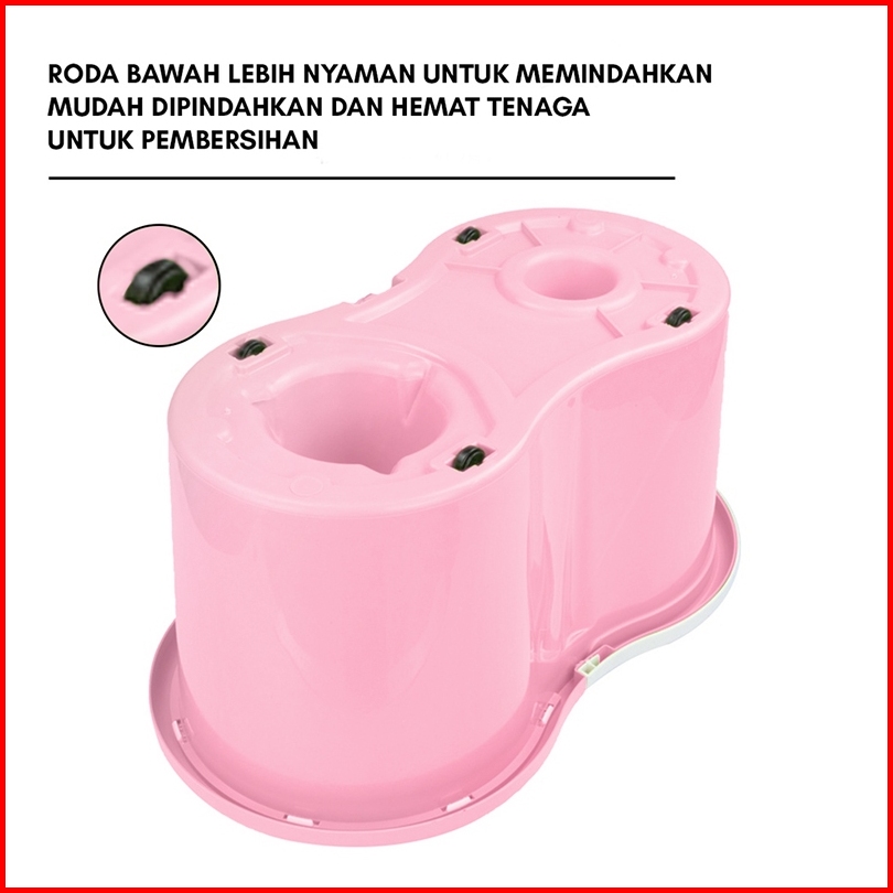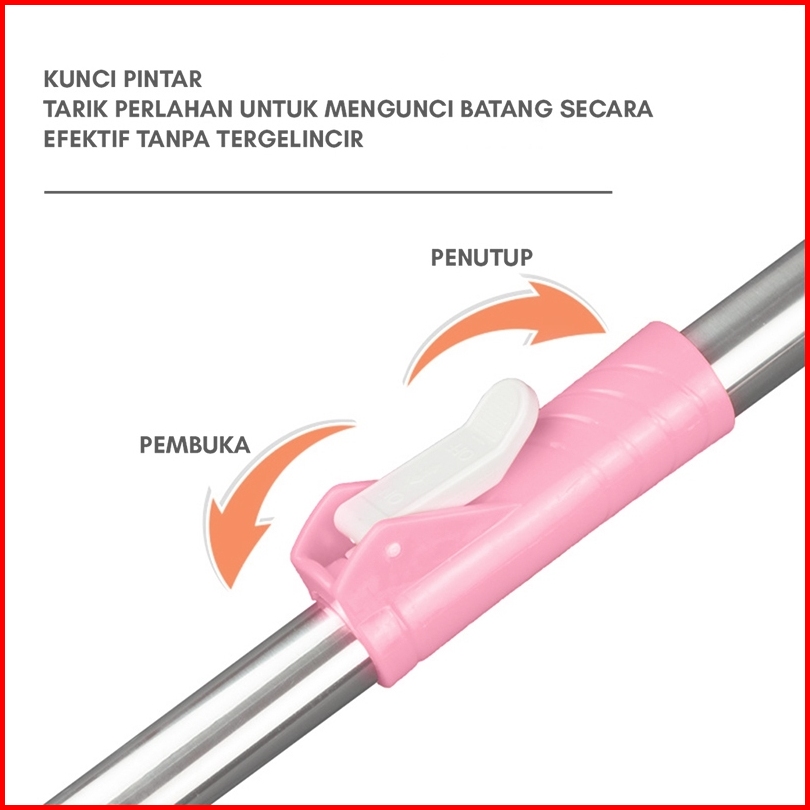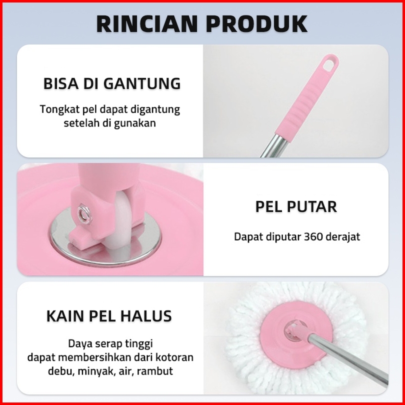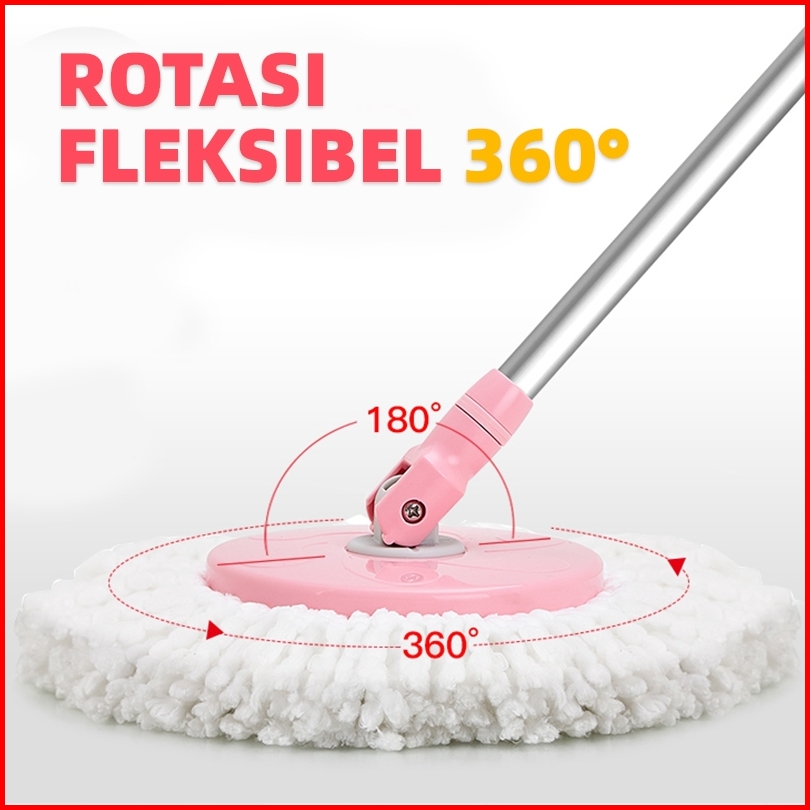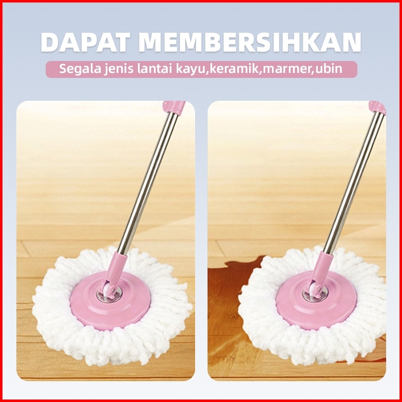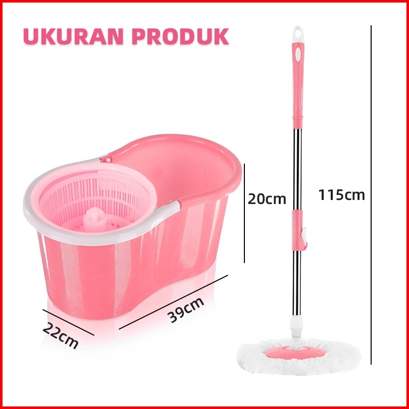 1 Set Pink Alat Pel Lantai Super Mop Putar Alat Pel Otomatis Pel Stainless Pel Plastik - Spin Mop Pembersih Lantai Pel P
