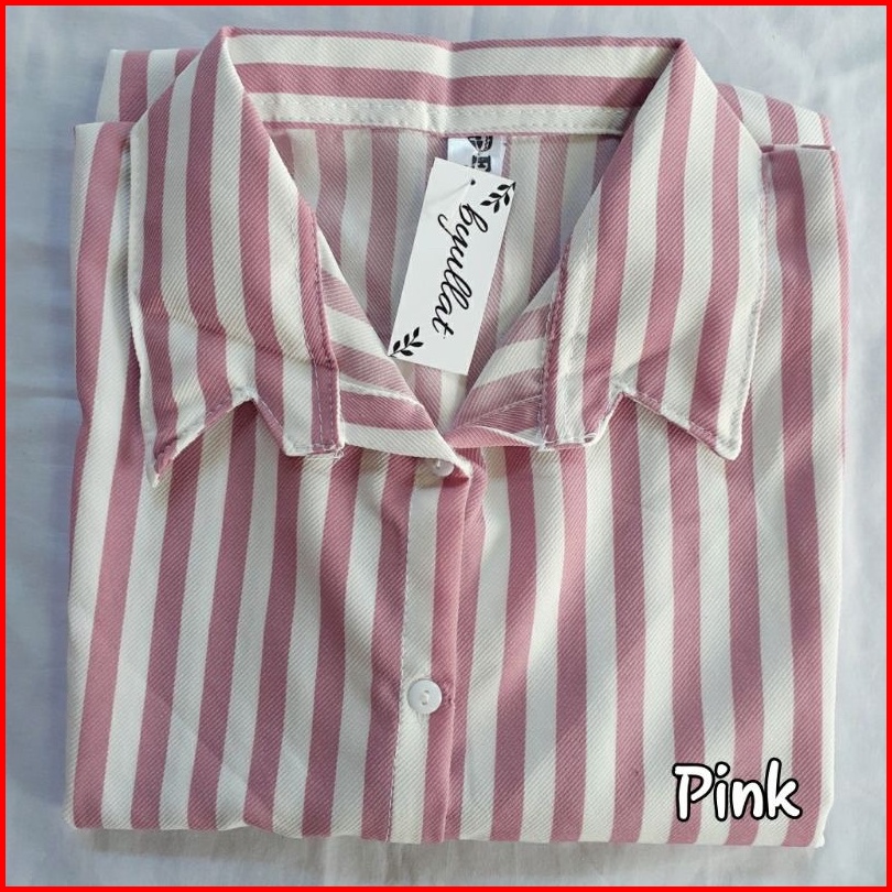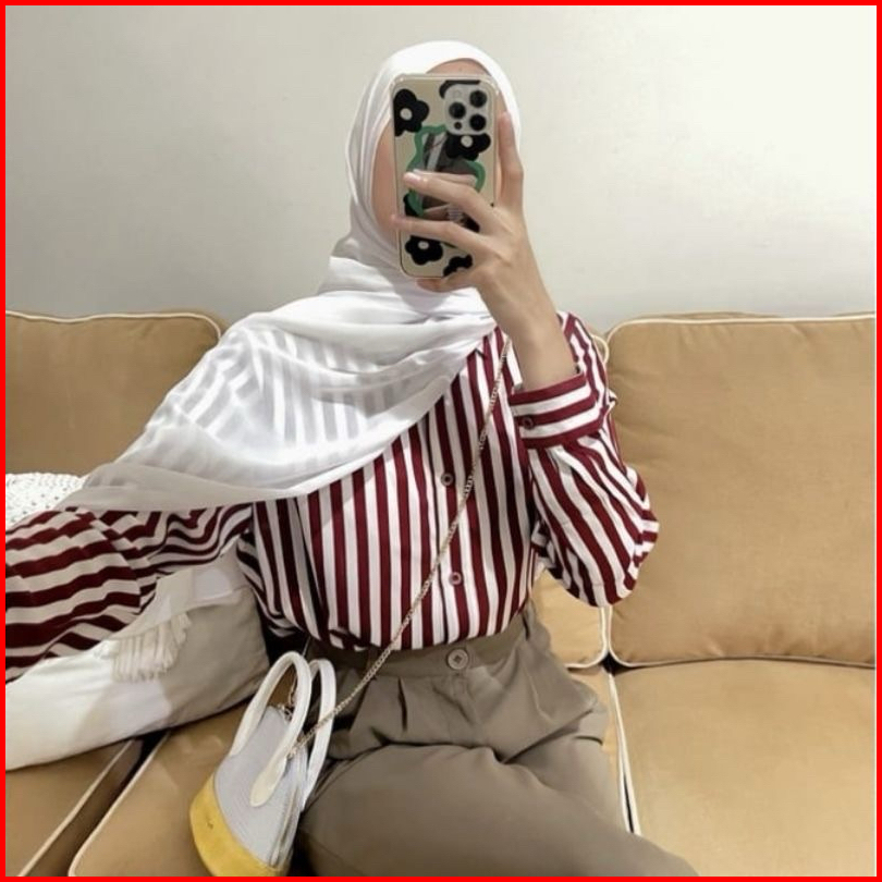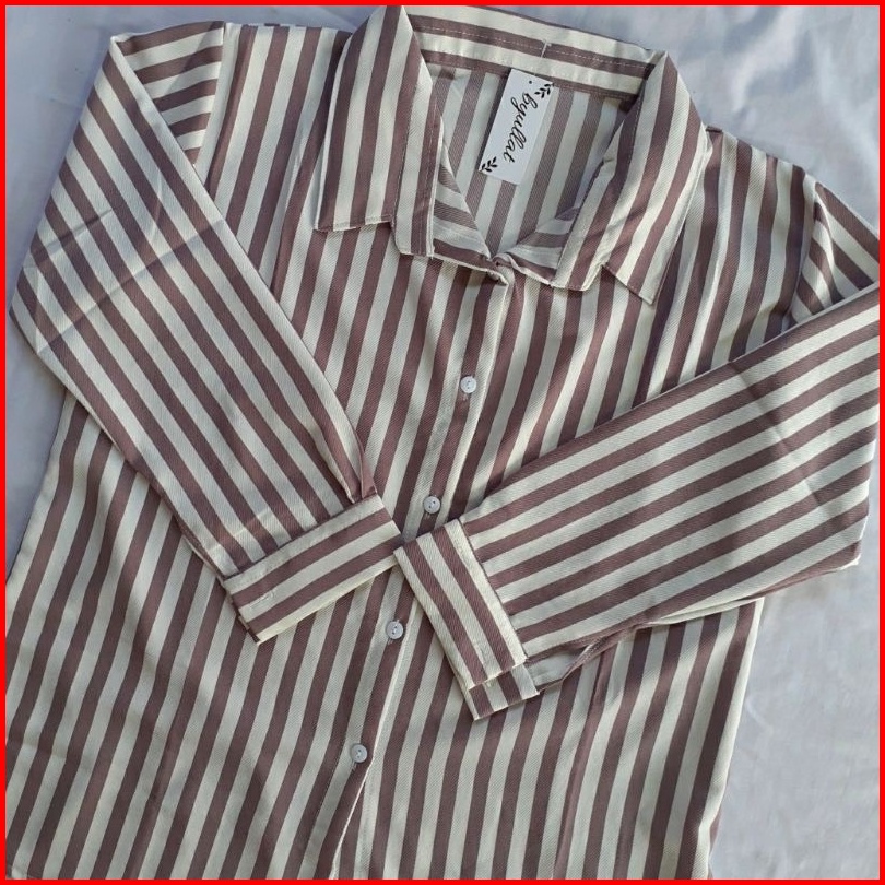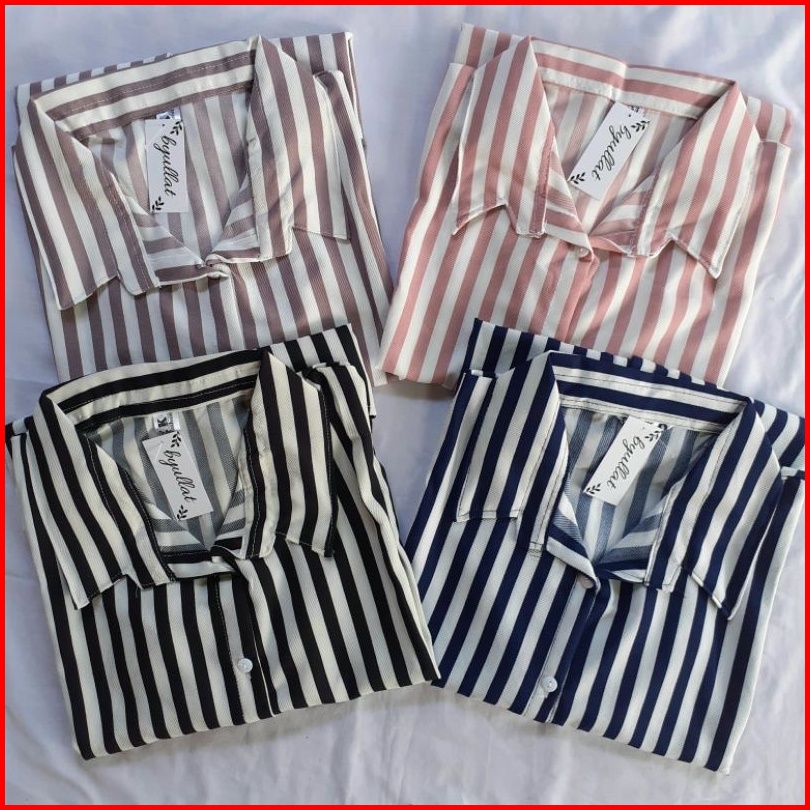 Kemeja Salur Wanita Terbaru 1kg Muat 5pcs Stripe Kemeja Salur Oversize Hits Ootd Selebgram Fashion Grosir Wanita Termura