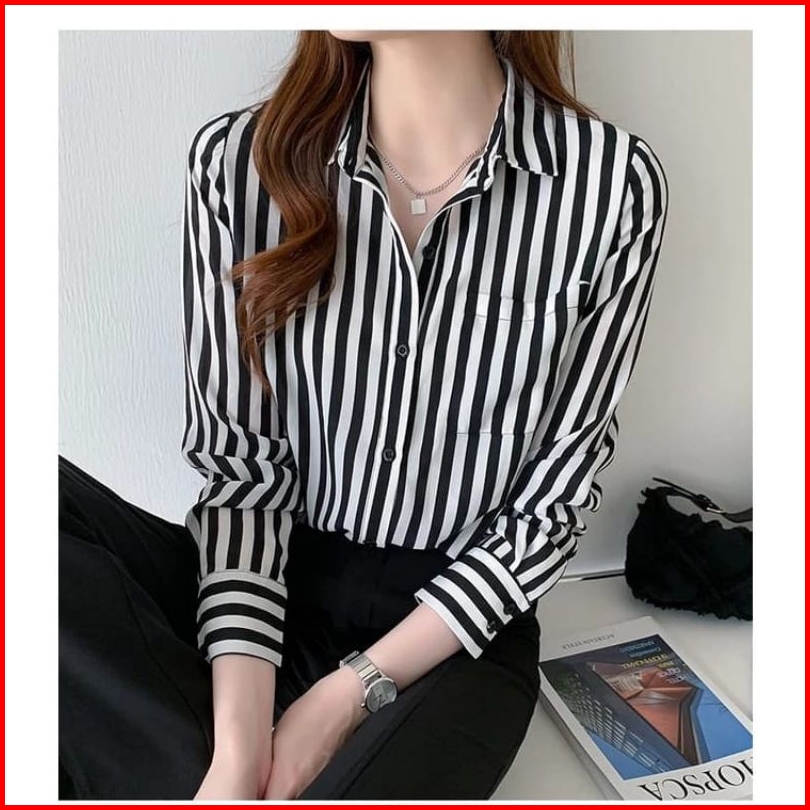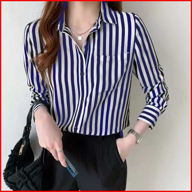 Spesial Edition Shakila Rania Kemeja Salur Garis Garis Simpel Full Kancing Untuk Jumbo M L Xl Xxl 3xl 4xl