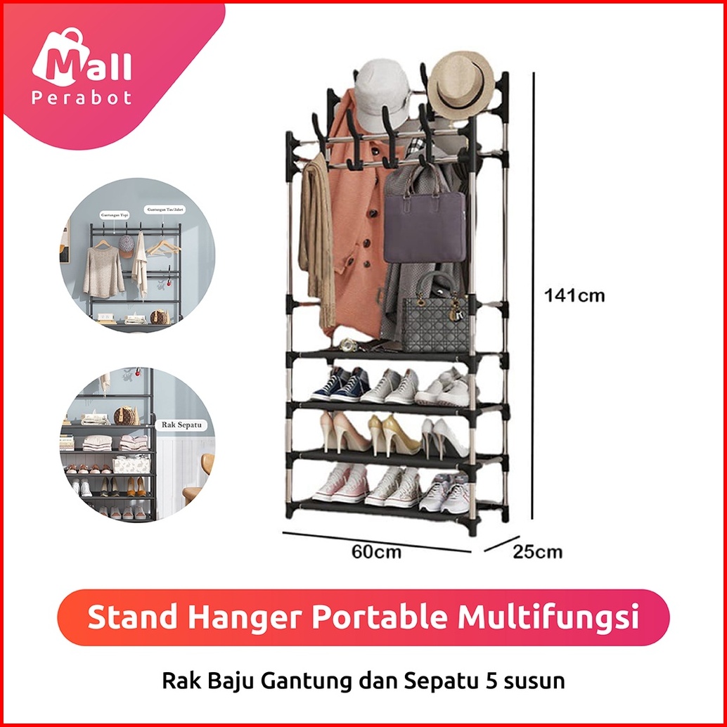 Mall Perabot Rak Susun Venus 5 Susun Stand Hanger Multifungsi Kabinet Gantungan Baju Tas Tempat Sepatu