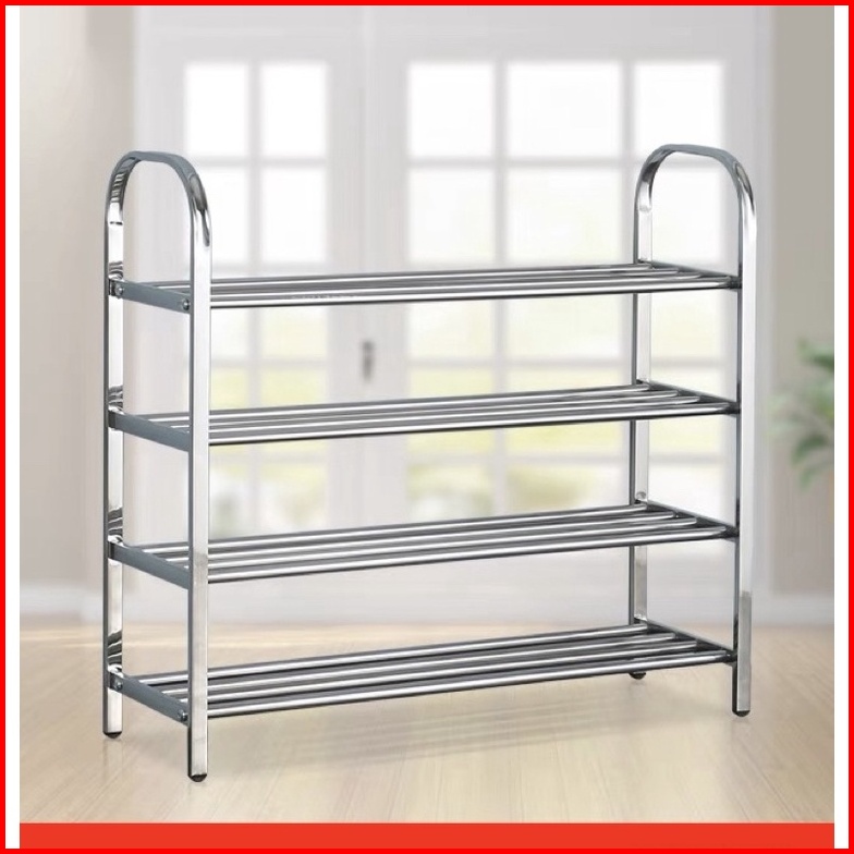 Indoonline - R002 - Tempat Rak Penyimpanan Sepatu Susun Stainless - Rak Sepatu Portable - Rak Serbaguna Stainless Mudah